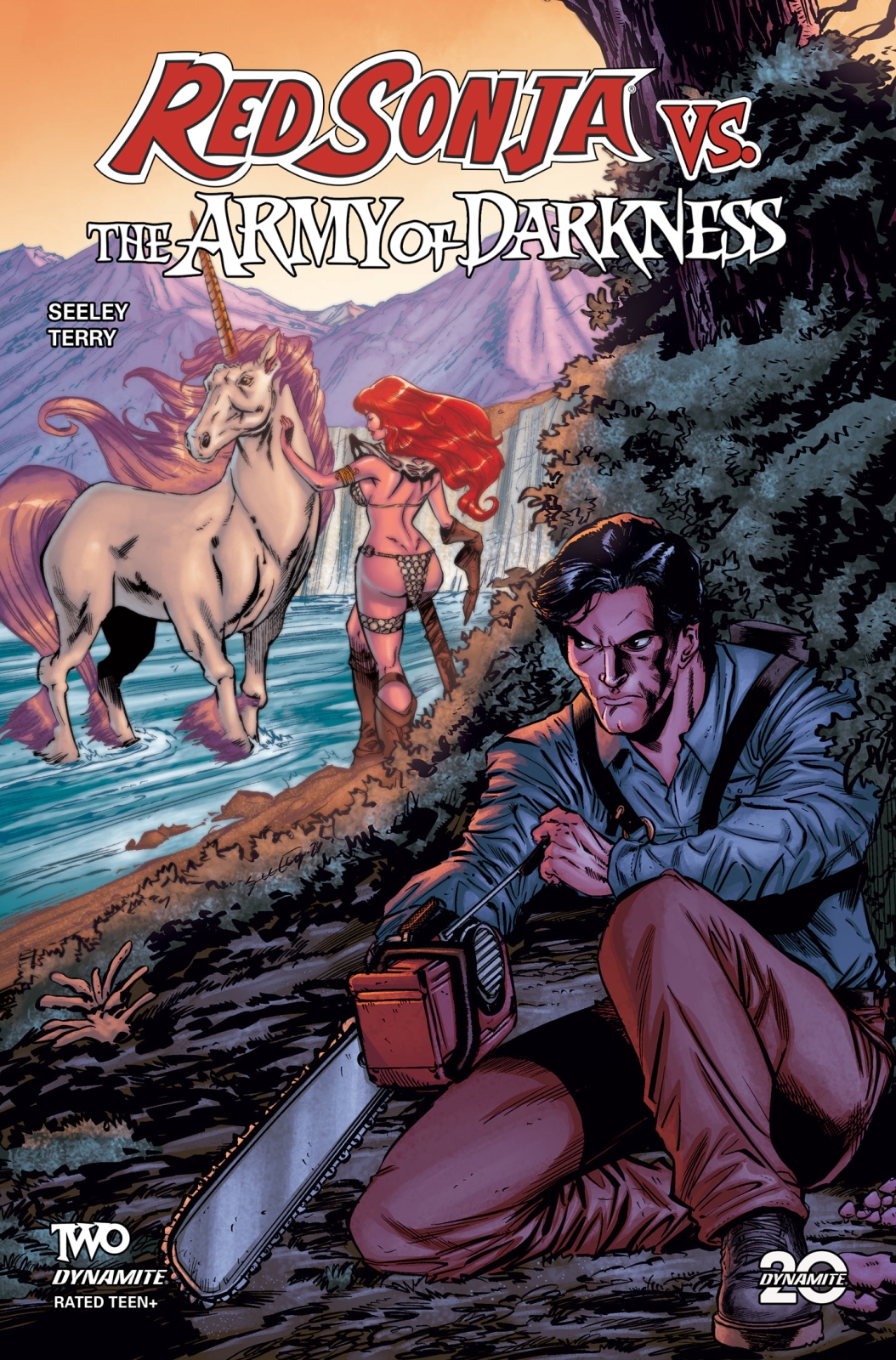 Comic book necromancers TIM SEELEY (Hack/Slash, Batman Eternal) and JIM TERRY (Sundowners, Alice Cooper vs. Chaos) delve into the forbidden realms to bring you the second issue of Red Sonja vs. The Army of Darkness – featuring torturously tinted covers wrought by the gnarled hands of SEELEY, BJORN BARENDS, TOM RANEY, and NIKKOL JELENIC!