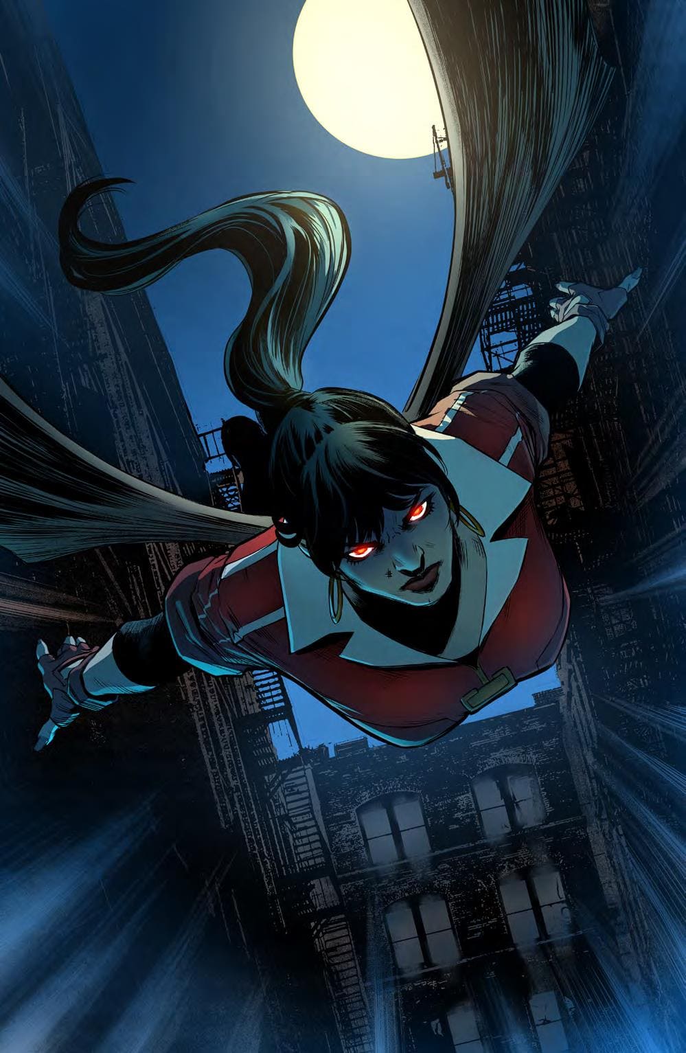 “Family Plot” continues as Dracula, Lord of Vampires, faces off against Vampirella when he returns to claim Vampi’s twin, Draculina, as his own daughter in an effort to prevent Draculina from again turning toward darkness and evil. Brace yourself for one hell of a Mother’s Day as Vampi’s Mommy Dearest, the agesless conjuress Lilith, complicates matters by inserting herself into this unholy custody battle!