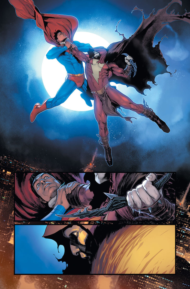 The World’s Finest battle a Dark Multiverse-infected Shazam in next month’s Batman/Superman #2, and you can check out an unlettered, first look preview of the issue here…