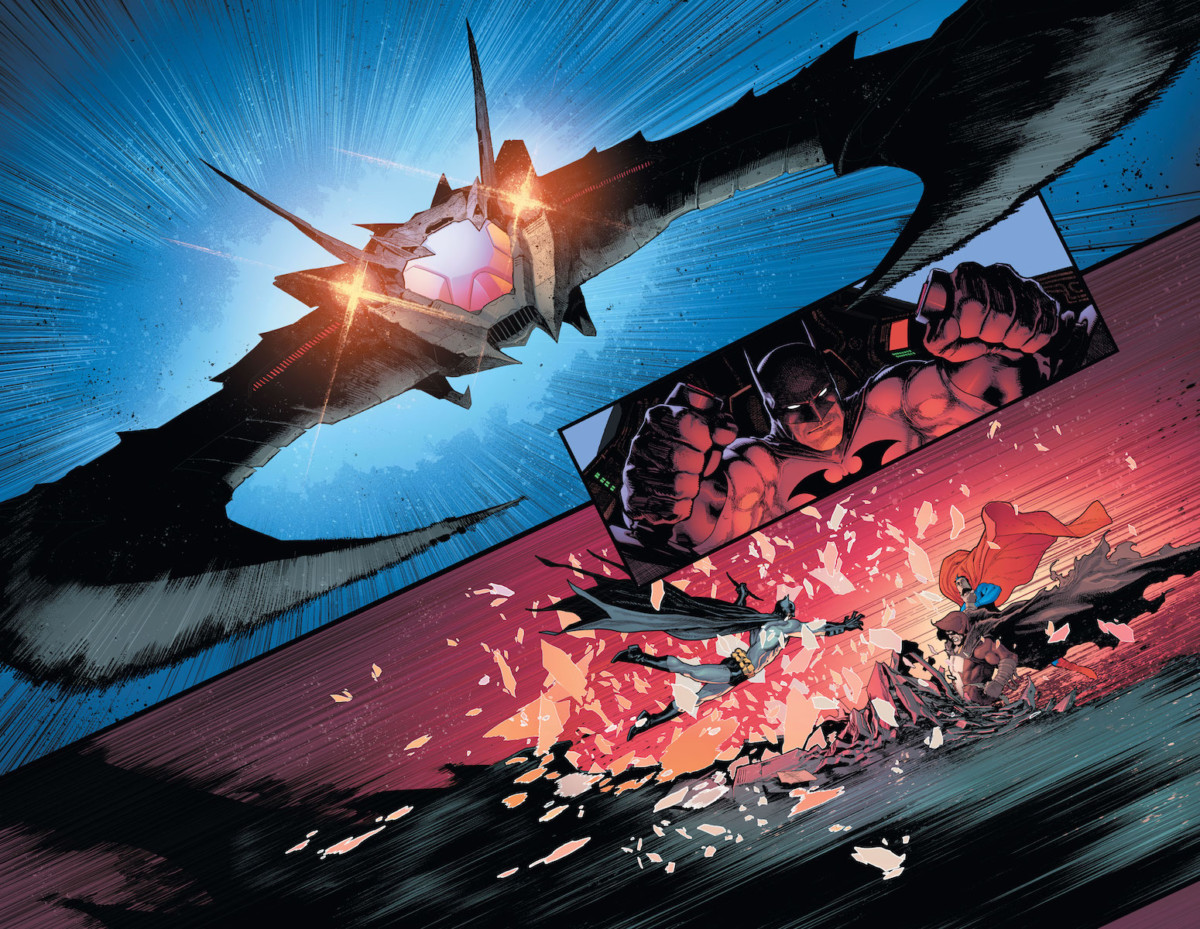 The Batman Who Laughs’ plot is bigger than either the Caped Crusader or the Man of Steel realized. Following a showdown with the devious killer’s first sentinel, a jacked-up, Dark Multiverse-infected Shazam!, the pair has to figure out who else has been targeted for similar transformations. Their first two guesses: someone very close to Batman and the one hero that would make failure nearly impossible—Superman himself!