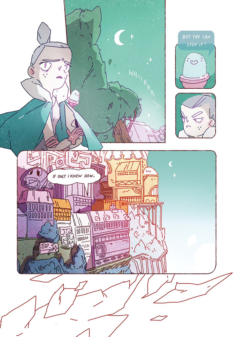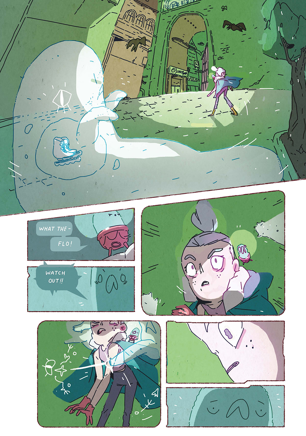 Junkwraith tells the story of ice-skating prodigy Florence Sato who is overwhelmed by pressure from her parents and peers and throws away her skates. This fateful moment accidentally summons a “junkwraith,” a terrifying ghost which seeks revenge for its abandonment by attacking the memories of its former owner. Before she forgets who she is, and to find out who she really wants to be, Florence must set off – with her trusty digital assistant Frank — on a long journey into the Wastelands to face the monster she created.