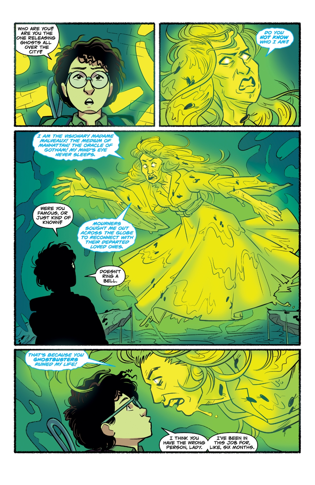 As tensions rise in the city and in the Spengler family, Phoebe discovers the entity targeting the Ghostbusters: the malevolent Madam Malvaeux! On her own and outmatched, Phoebe escapes through the sewers, and stumbles into . . . supernatural standup?