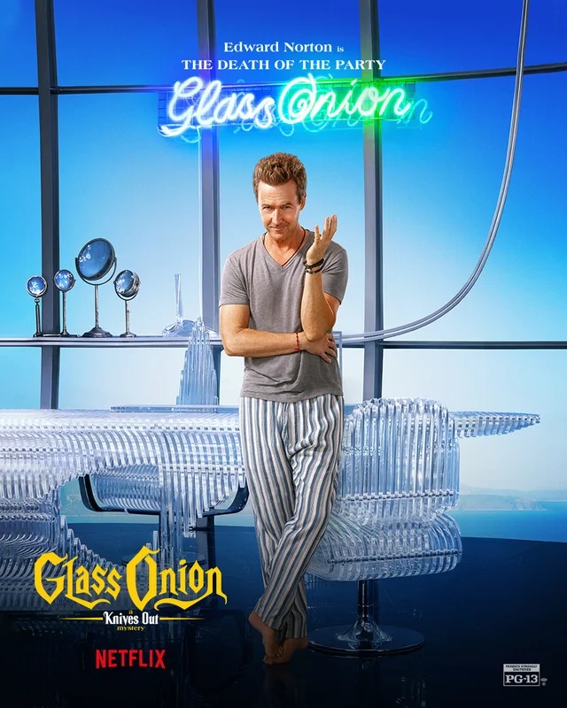 Ahead of its theatrical release this Wednesday, Netflix has shared nine new character posters for Rian Johnson’s eagerly anticipated sequel Glass Onion: A Knives Out Mystery featuring Daniel Craig’s Detective Benoit Blanc along with his latest suspects, played by Edward Norton, Janelle Monáe, Kathryn Hahn, Leslie Odom Jr., Kate Hudson, Jessica Henwick, Madelyn Cline, and Dave Bautista; check them out here…