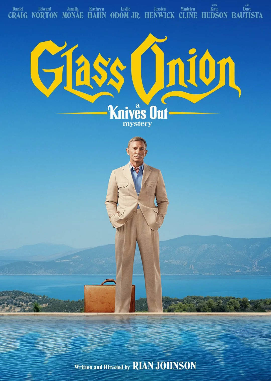 Glass Onion: A Knives Out Mystery stars Daniel Craig, Edward Norton, Janelle Monáe, Kathryn Hahn, Leslie Odom Jr., Jessica Henwick, Madelyn Cline, Kate Hudson, and Dave Bautista.