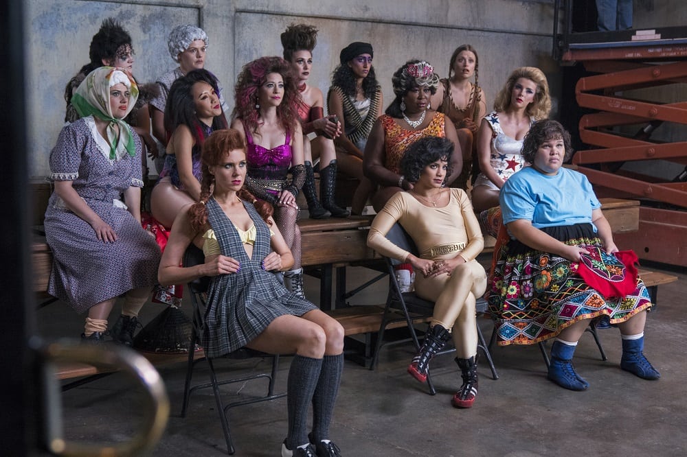 With GLOW season 2 set to arrive on Netflix in a little over a week, a new featurette has arrived online for the comedy series which sees members of the cast and crew discussing the hair, make-up and costumes that transform the stars in to the Gorgeous Ladies of Wrestling; check it out here along with a new batch of images…