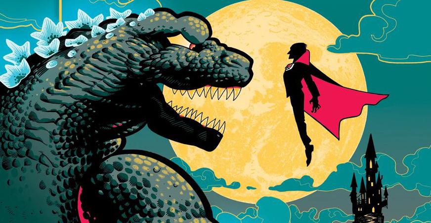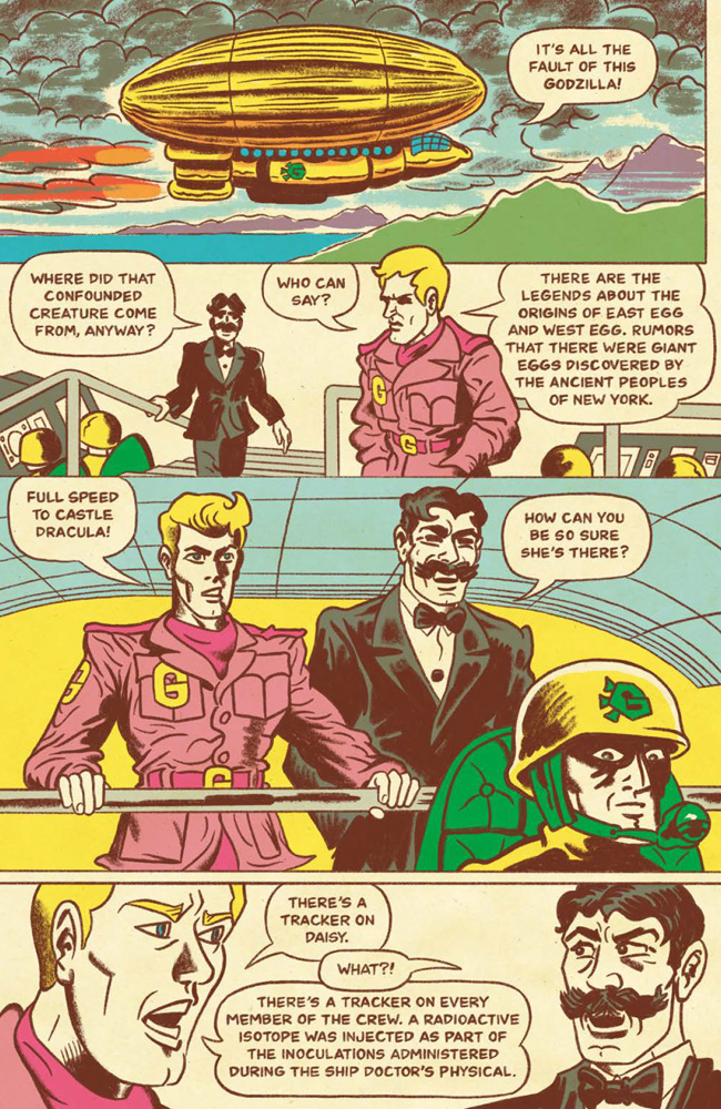 Even in the face of the combined efforts of Jay Gatsby, Sherlock Holmes, Jules Verne, and the Time Machinist, Godzilla’s global rampage shows no sign of slowing down. That leaves our gang with no choice but to enlist the help of the terrifyingly evil DRACULA.It’s Godzilla versus vampires in the thrilling finale to Godzilla’s Monsterpiece Theatre. Will our heroes (and villains) prevail? Will saving Daisy finally be enough to change Gatsby’s fate and uncross the stars for these lovers?