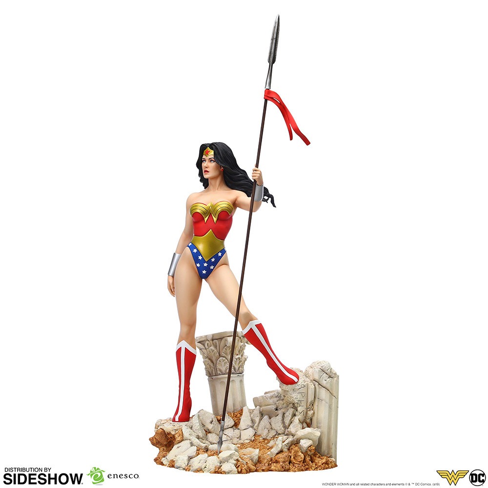 Sideshow and Enesco are proud to present the Wonder Woman Statue by Grand Jester Studios. Diana stands calmly amidst the sun-bleached rubble and ruins of this crumbling temple. A new day dawns and Wonder Woman greets it with steely-eyed serenity in this 1:6 scale premium format statue. The Princess of Themyscira will bring justice to your collection!