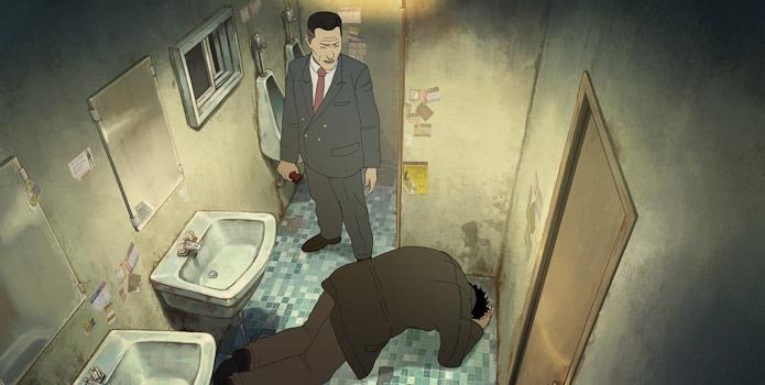 Likewise, Sang-Ho doesn’t back down on his subject matter and even features an unlikely protagonist in the form of Min-Chul (voiced by Yang Ik-June), a violent street thug and a compulsive gambler who frequently abuses his wife and daughter. However, he becomes the unexpected antihero who learns the truth about the scandal, which brings a sense of bleak irony to the overall story of evil vs evil angle. The only difference is that Min-Chul is seen as a lesser evil, despite him being an untrustworthy person all the while in the eyes of others, especially the local police.