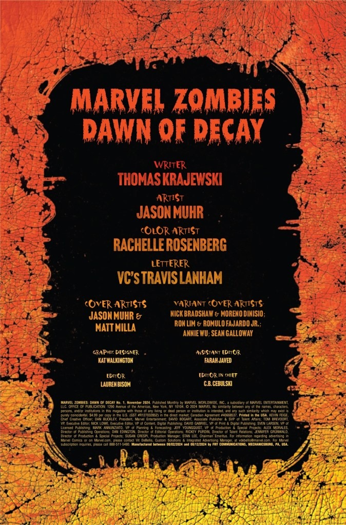 Marvel Zombies: Dawn of Decay #1 goes on sale on September 4th, priced $4.99.