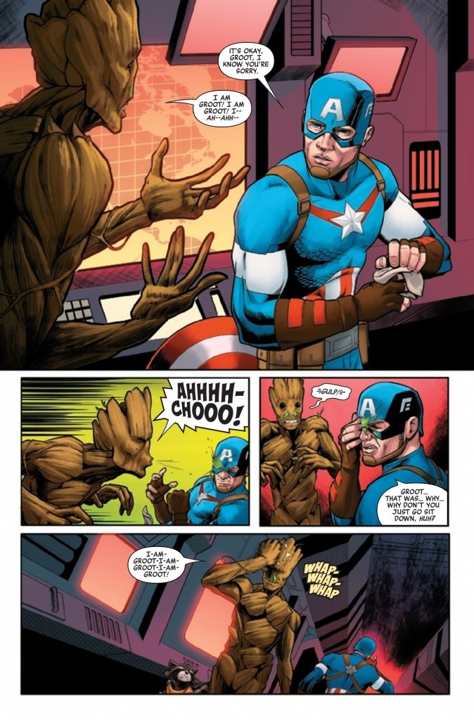 A NEW ZOMBIE VIRUS IS UNLEASHED… AND GROOT IS PATIENT ZERO! Groot feels bad – not only because Rocket’s latest scheme put them firmly in the crosshairs of the Avengers, but also he’s just plain sick! Sap-dripping nose and all. Things go from bad to apocalyptic, however, after an ill-timed sneeze in Captain America’s face has unforeseeable consequences! Suddenly, Groot is being attacked by a horde of zombified Avengers, and only he and Hulk, with his impenetrable green skin, remain impervious. Now it’s up to these two heroes to team up and fight their way through a blighted New York City to Banner’s lab in Avengers Tower to find a cure before it’s too late. But can Groot keep the hero in check and on track, or will Hulk unleash his deadly might on the zombies they once called friends?