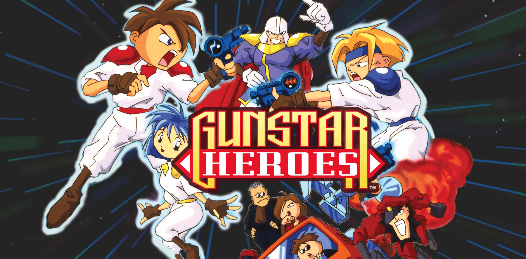 Gunstar Heroes was developed by Treasure, the Japanese studio known for frantic action games and innovative gameplay systems, and first published by SEGA for the SEGA Genesis/Mega Drive. The game has two playable characters, ‘Red’ and ‘Blue’ – two members of the Gunstar family – who are on a mission to stop the Empire, an evil organisation that has set out to destroy civilization.
