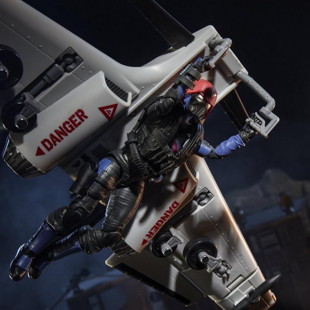 New to the G.I. Joe Classified Series line, Cobra Pilot & Cobra C.L.A.W. (Covert Light Aerial Weapon) figure and vehicle set comes ready for adventure, with multiple points of articulation for high poseability. This Cobra Pilot figure contains nine character-inspired accessory pieces including removable helmet, two alternative heads, figure stand and weapon accessories. The Cobra C.L.A.W. vehicle features retractable landing gear with manually rolling wheels; pivoting canards, ailerons and wing tips; swivelling turret with barrel that articulates up and down; two jet thruster blast effects and two missile accessories.