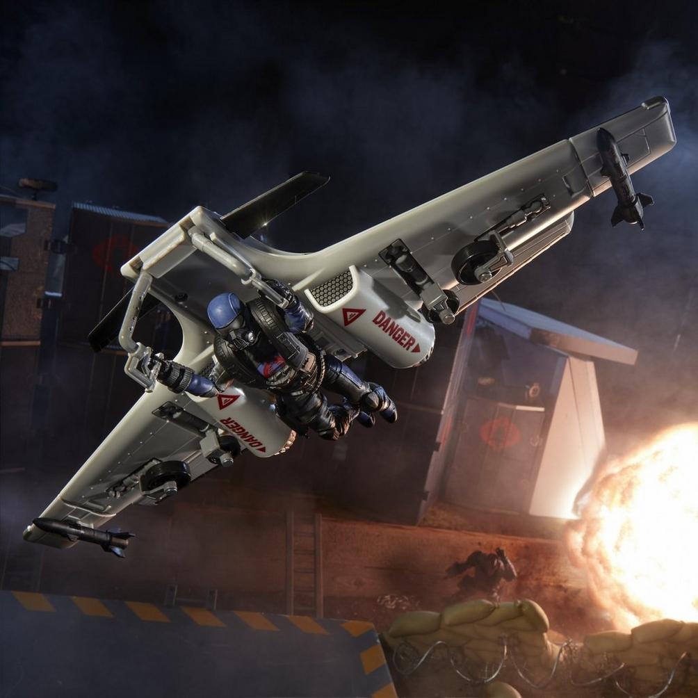 - COBRA TAKES FLIGHT: the enemy battle wing features retractable landing gear with manually rolling wheels; pivoting canards, ailerons and wing tips; swivelling turret with articulated barrel; two jet thruster blast effects and two missile accessories