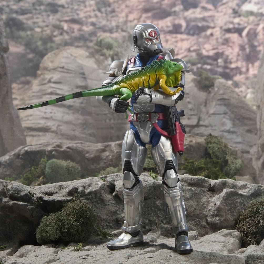 New to the G.I. Joe Classified Series line, Cobra Commander With Combat Armour comes ready for adventure, with multiple points of articulation for high poseability. This Cobra Commander With Combat Armour figure contains seven character-inspired accessory pieces including an alternative head to change between human and serpent, three alternative hands, backpack, pet iguana ‘Serpentor’ and weapon accessory. To protect their leader in the heat of battle, the best technical minds of Destro’s armament factory created a special suit of combat armour for Cobra Commander. It’s rumoured that his helmet has an anti-tamper device with a direct hook-up to 225 grams of plastic explosive.