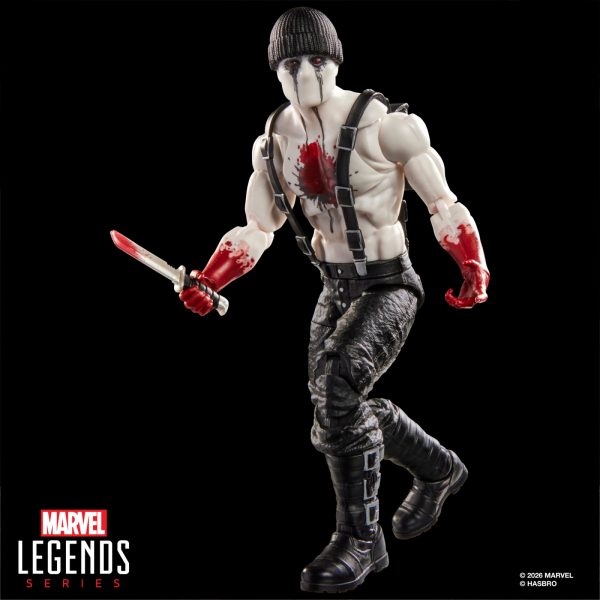 Marvel’s Bullseye: Recruited to burn down Hell’s Kitchen, frequent Daredevil nemesis Bullseye finds himself on a path to prove he’s the world’s greatest assassin. Marvel’s Muse: Deranged criminal Muse turns his victims into performance art pieces drawing the attention of vigilante hero Daredevil, the protector of Hell’s Kitchen. These two characters make an excellent 2-pack, because they both share a flair for the dramatic (and sometimes melodramatic). This works out well when it’s time to pose these villains against your favorite Marvel Legends Daredevil action figures. Each figure features 25+ points of articulation, making for awesome play and display. Bullseye comes with 4 alternate hands, 1 alternate head, 1 machete, 1 knife, 1 hatchet, 1 pistol, 1 rifle, and 1 bat while Muse comes with 4 alternate hands, a knife, and a paint can.