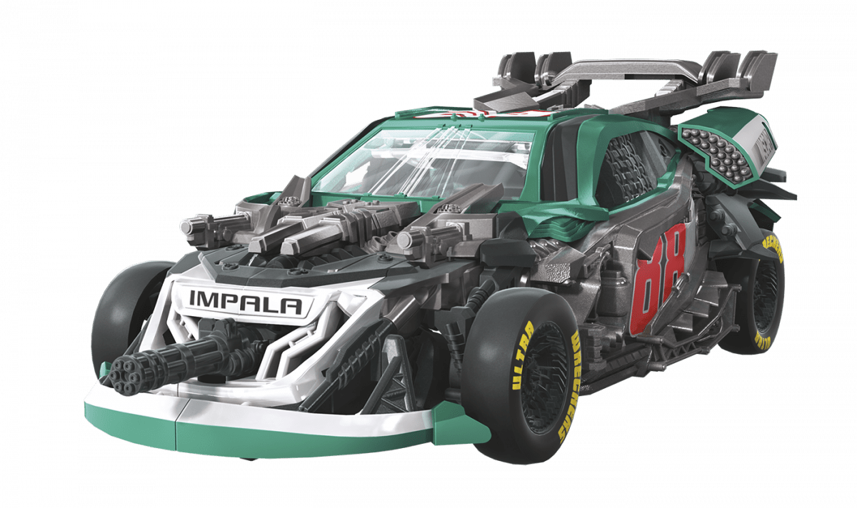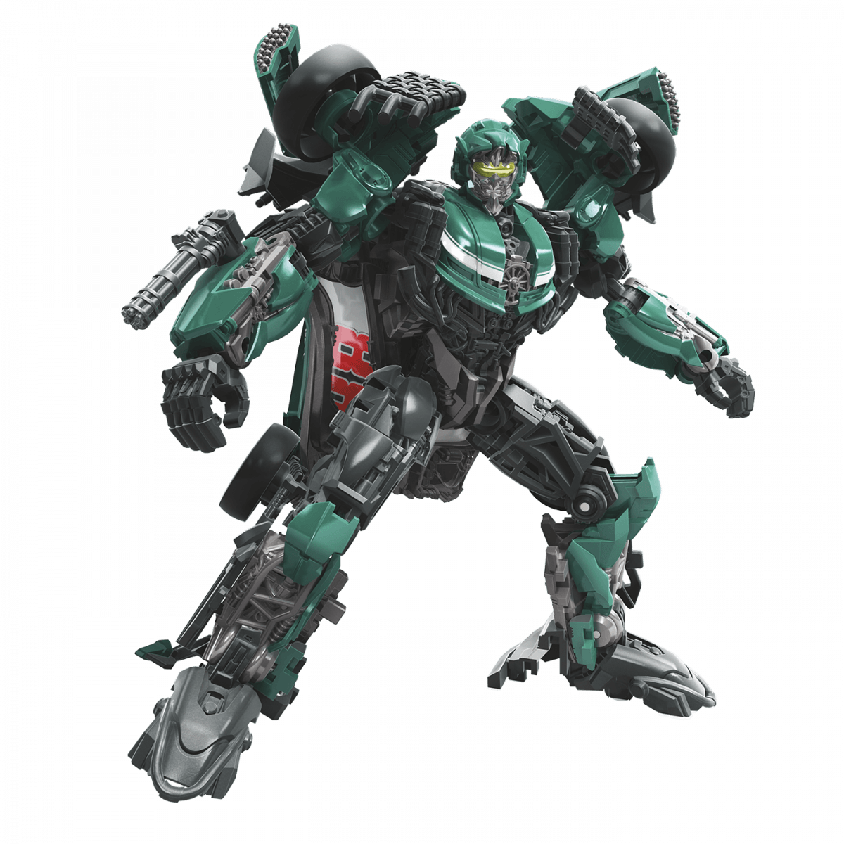 The Studio Series 58 Deluxe Class ROADBUSTER action figure is 4.5 inches tall, features vivid movie-inspired deco, and converts from robot to Chevy Impala mode in 23 steps. Use the removable backdrop to display ROADBUSTER in the Battle of Chicago scene from TRANSFORMERS: Dark of the Moon, where ROADBUSTER and the Wreckers turn Decepticons into scrap. The Studio Series 58 Deluxe Class ROADBUSTER figure is highly articulated for poses and comes with a detailed weapon accessory.