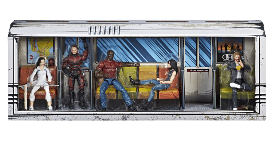 Imagine JESSICA JONES, LUKE CAGE, DAREDEVIL, IRON FIST, and COLLEEN WING defending New York City with the MARVEL LEGENDS SERIES DEFENDERS RAIL AUTHORITY 5-PACK. Each figure features multiple points of articulation and premium, detailed styling, and comes packed out in an original package designed to look like the underground public transportation of New York City. Includes five 6-inch figures and five accessories. The MARVEL LEGENDS SERIES DEFENDERS RAIL AUTHORITY 5-PACK will be for sale at San Diego Comic-Con 2018. Limited quantities of this item will be available at select conventions and select online retailers after the convention in the relevant market (including HasbroToyShop.com where available).