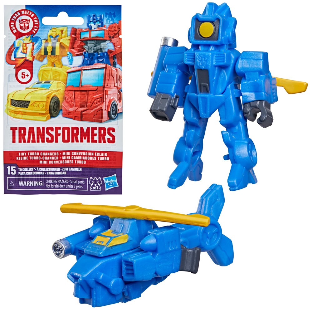 Discover 1 of 15 surprise mini action figures with TRANSFORMERS Tiny Turbo Changers toys! Each 1.5-inch figure changes from robot mode to alt mode in just 2 to 5 steps that are simple enough for kids ages 5 and up. Possible characters are Optimus Prime, Bumblebee, Wheeljack, Autobot Whirl, Arcee, Autobot Hot Rod, Autobot Ratchet, Elita-1, Grimlock, Megatron, Shockwave, Soundwave, Starscream, Blackarachnia, and SkyByte. These small TRANSFORMERS toys make great stocking stuffers, Easter basket fillers, or birthday party favor toys.