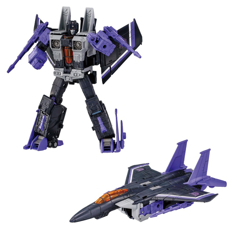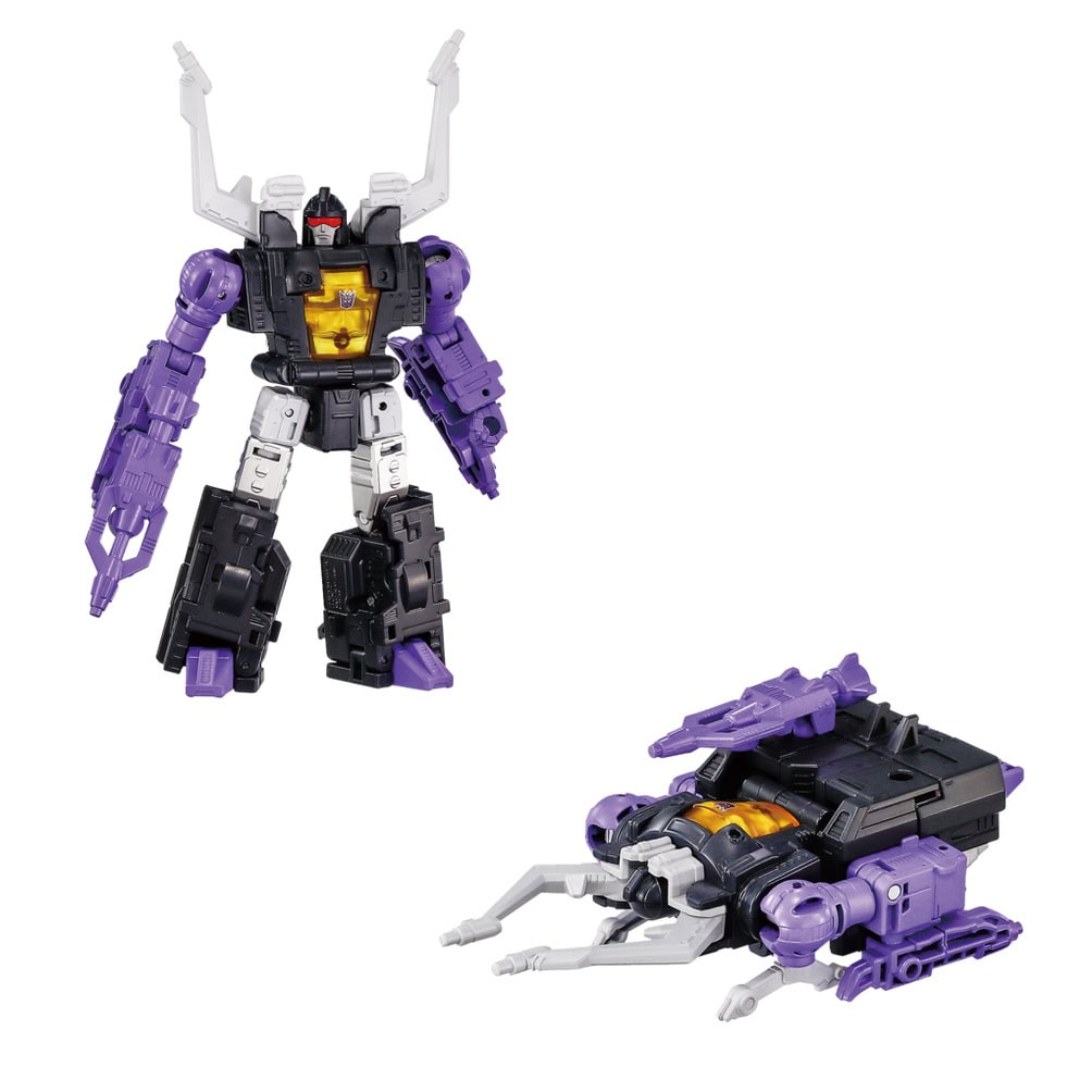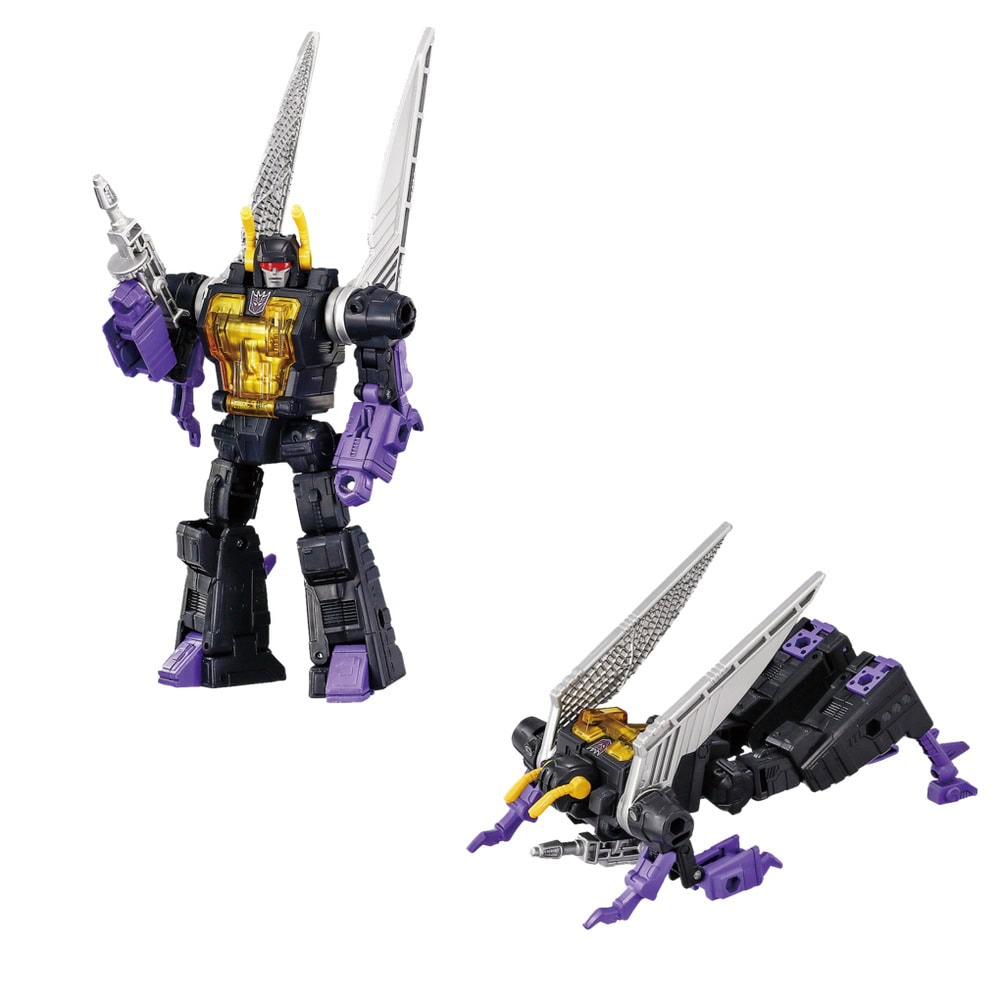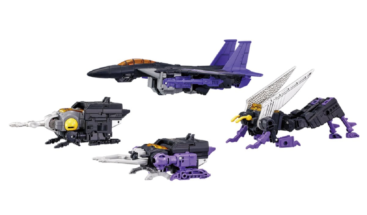 The Dramatic Capture Series celebrates 40 years of the Transformers brand with G1-inspired figures showcased in premium deco and details. This set comes with Skywarp figure that converts from bot to jet, 3 Insecticon figures that convert from bot to bug, and accessories to recreate favourite scenes. These collectible Transformers figures for adults feature authentic Takara Tomy design and deco.