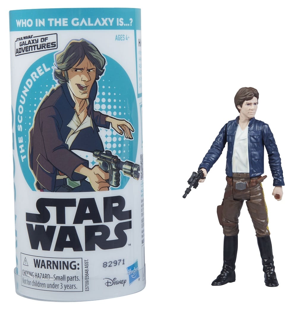 A smuggler and a scoundrel, HAN SOLO proves that he can also be a hero when he rescues his friends and helps in the Rebellion against the Galactic Empire. Learn about HAN SOLO and other STAR WARS characters with figures from GALAXY OF ADVENTURES. Each pack contains 1 3.75-inch figure, 1 mini comic, and 1 QR code that kids can activate with a smart device (smart device not included) to discover more stories online about the character! Includes figure, mini comic, and digital code. Available exclusively at Walmart.