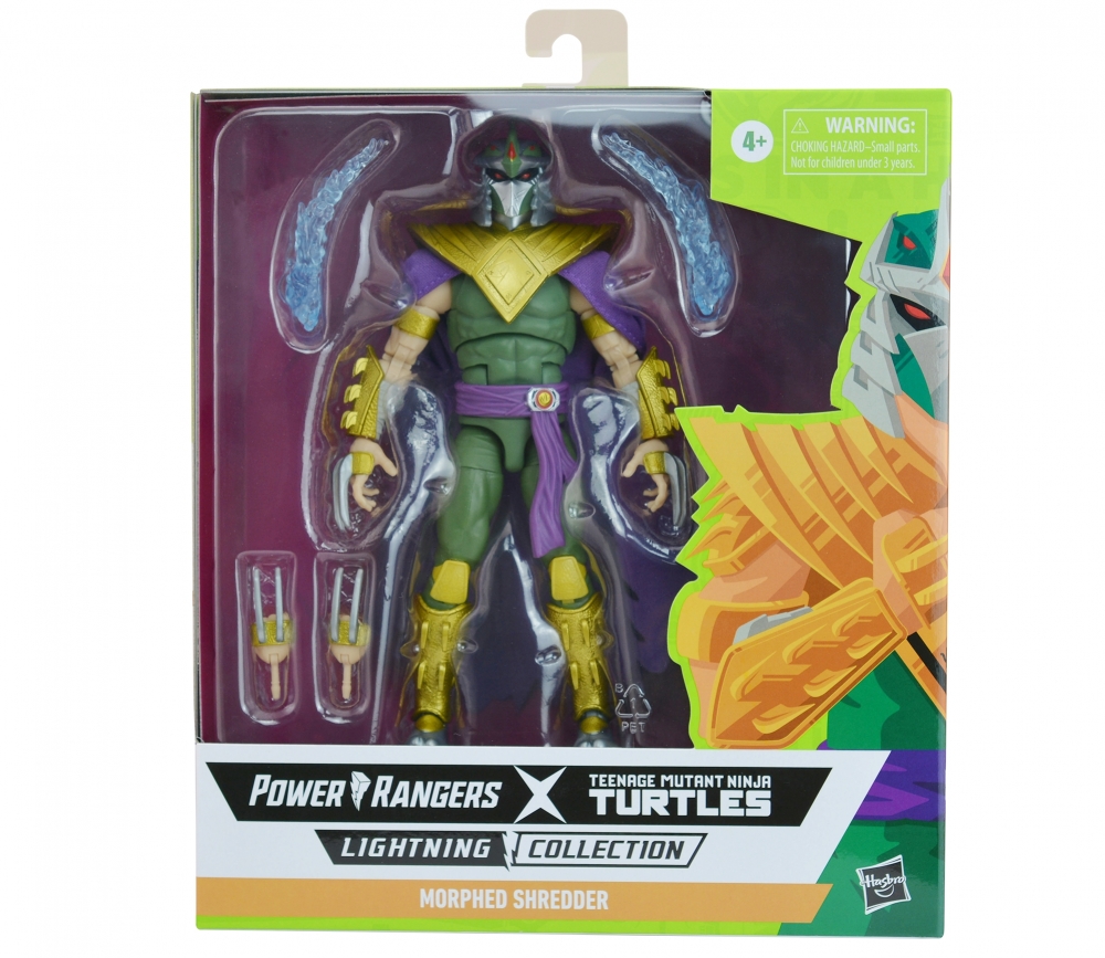 COWABUNGA DUDES, DUDETTES, AND DUDERINOS… IT’S MORPHIN TIME! From DINO FURY back to the original MIGHTY MORPHIN POWER RANGERS, the POWER RANGERS have brought teamwork, action, and adventure to fans. The legacy continues with figures, vehicles, collectibles, and roleplay toys from Hasbro. Imagine all the action of POWER RANGERS with toys from Hasbro! In the Boom! Comics crossover miniseries, Shredder uses the power of Tommy’s coin and morphs into a twisted, evil version of the Green Ranger. This MIGHTY MORPHIN POWER RANGERS X TEENAGE MUTANT NINJA TURTLES LIGHTNING COLLECTION MORPHED SHREDDER GREEN RANGER Figure features premium paint and decorative details inspired by the Boom! Comics crossover miniseries, with over 20 points of articulation for high poseability. Plus, swappable hands and a soft goods cloak for more ways to play or display in various action poses and a fabric cape in that iconic Shredder purple we all know and loathe.