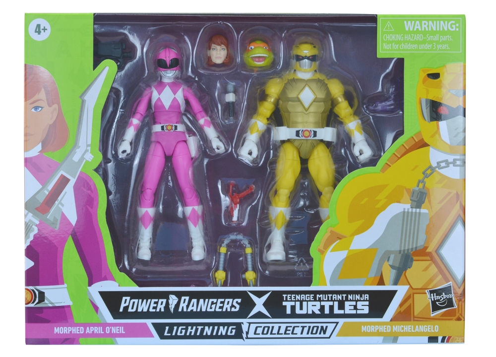 MIGHTY MORPHIN POWER RANGERS X TEENAGE MUTANT NINJA TURTLES LIGHTNING COLLECTION MORPHED MICHELANGELO YELLOW RANGER AND APRIL O’NEIL PINK RANGER Collab 2-Pack