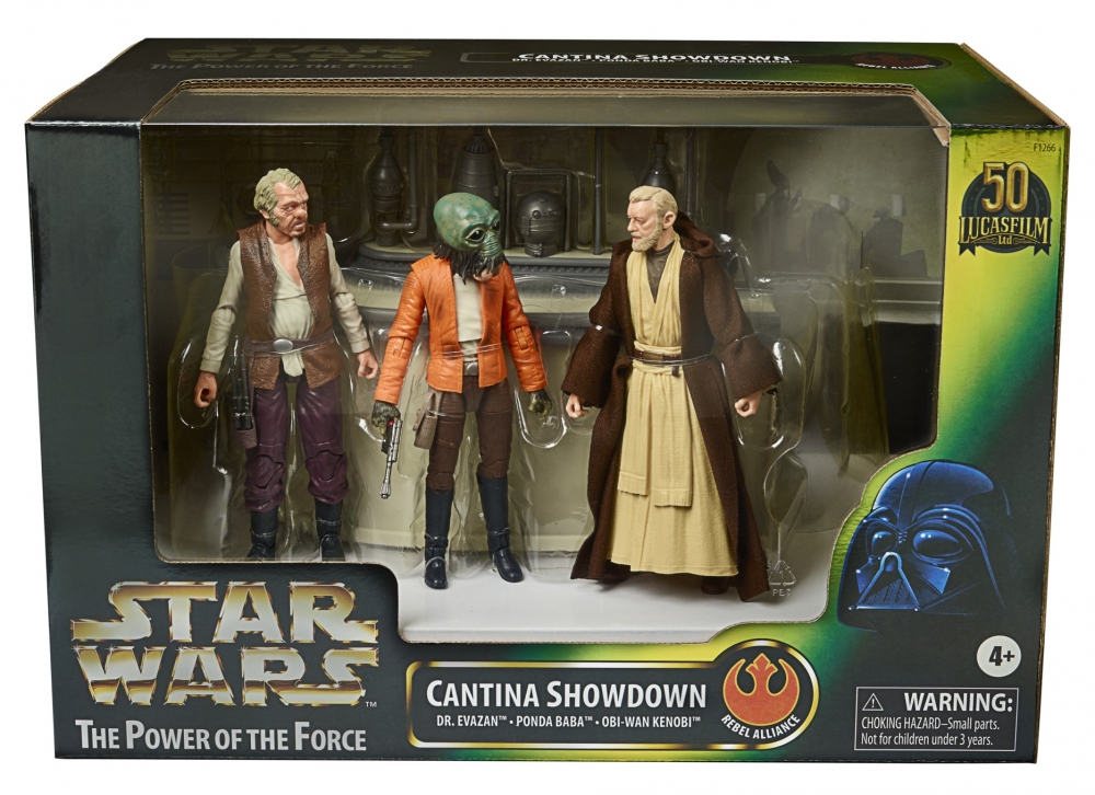 Commemorate the first 50 years of LUCASFILM with figures inspired by the original STAR WARS trilogy featuring STAR WARS The Power of the Force-themed packaging. Recall intense moments from the STAR WARS Galaxy with this STAR WARS: THE BLACK SERIES THE POWER OF THE FORCE CANTINA SHOWDOWN Playset, featuring DR. EVAZAN, PONDA BABA, and OBI-WAN KENOBI 6-inch-scale figures. STAR WARS fans can display these fully articulated figures featuring poseable heads, arms, and legs, as well as premium deco, in their action figure and vehicle collection. The playset combines with additional CANTINA SHOWDOWN playsets to create the full scene inspired by STAR WARS: A NEW HOPE. Additional playsets sold separately. Includes Cantina bar, 3 figures, and 3 accessories. Available exclusively on Hasbro Pulse in the US, Canada & UK in Fall 2021.