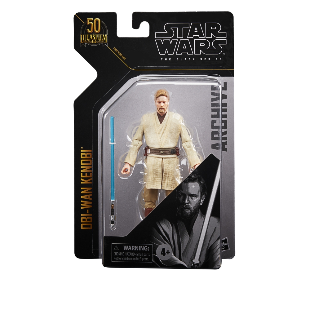 Commemorate the first 50 years of LUCASFILM with figures inspired by the original STAR WARS trilogy. Recall intense moments from the STAR WARS Galaxy with this STAR WARS: THE BLACK SERIES ARCHIVE 6-INCH OBI-WAN KENOBI Figure, featuring premium deco across multiple points of articulation. STAR WARS fans and collectors can display this highly poseable, fully articulated figure featuring premium design in their action figure and vehicle collection. Includes figure and accessory.