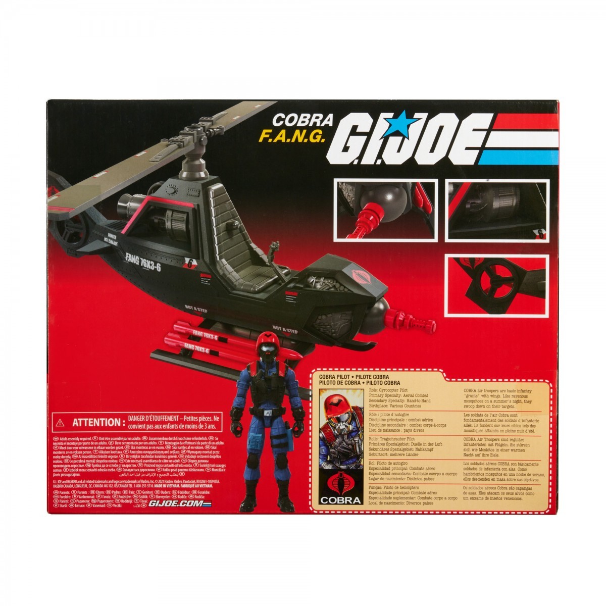 With the Retro Collection, fans can imagine exciting action and adventure from the pulse-pounding world of G.I. JOE! Featuring 3.75-inch-scale figures and vehicles inspired by the over-50-year legacy of G.I. JOE, the Retro Collection offers classic deco, design, and multiple points of articulation, as well as packaging accentuated by retro Hasbro branding. Fans and collectors can imagine heroic action and adventure with this toy Cobra F.A.N.G. vehicle inspired by the vehicle in the G.I. JOE universe with Cobra air troopers known for swooping down on their targets.