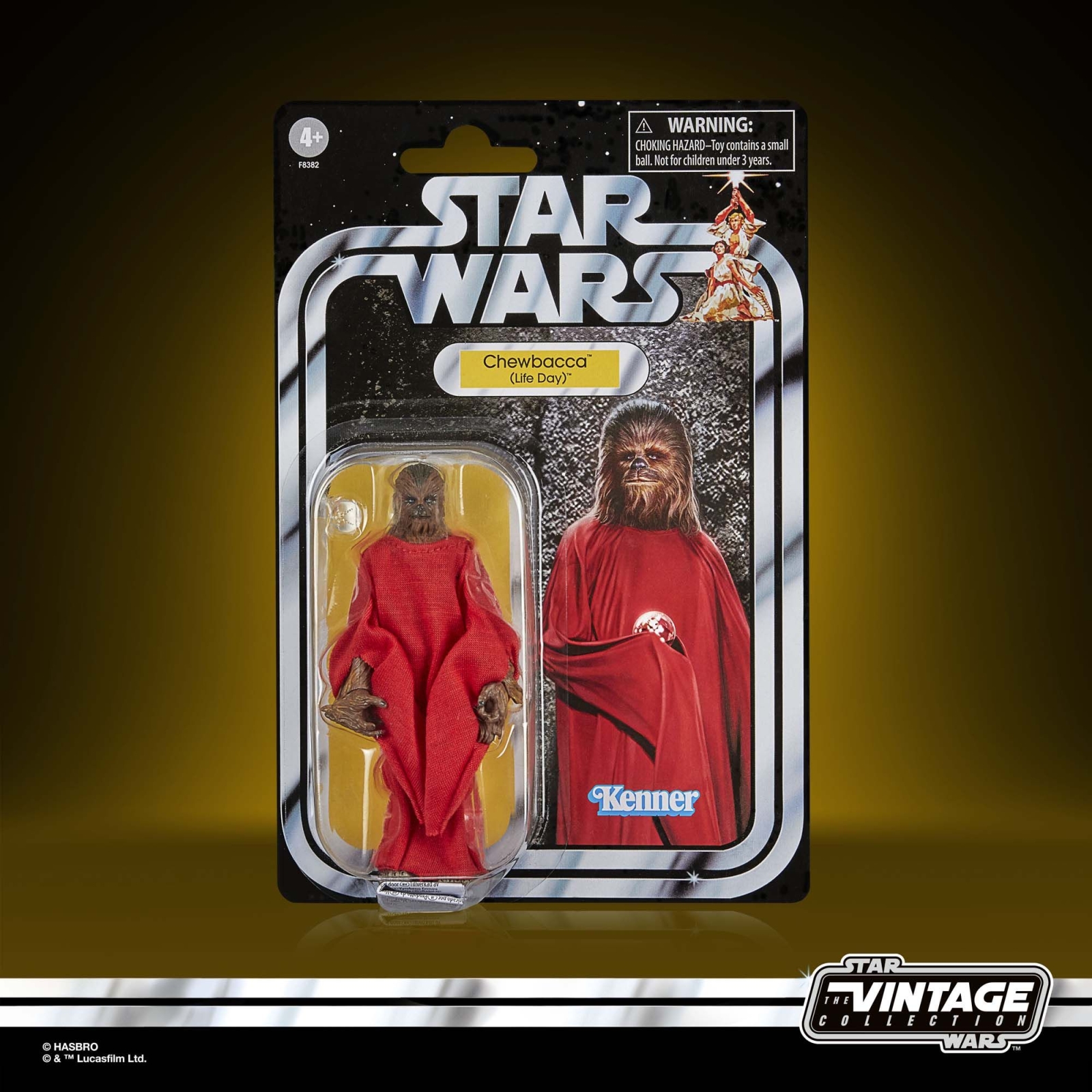 Life Day is a longstanding tradition celebrating Wookiee cultural values including family, joy, and harmony. While festivities are traditionally held at the Tree of Life on Kashyyyk, Wookiees throughout the galaxy mark the day. Fans can celebrate the legacy of  STAR WARS, the action-and-adventure-packed space saga from a galaxy far, far away, with this premium 3.75-inch scale STAR WARS: THE VINTAGE COLLECTION CHEWBACCA (LIFE DAY) figure inspired by STAR WARS HOLIDAY SPECIAL. This figure features premium detail and design across product and packaging inspired by the original Kenner line, as well as the entertainment-inspired collector grade deco. Includes figure and crystal ball accessory.