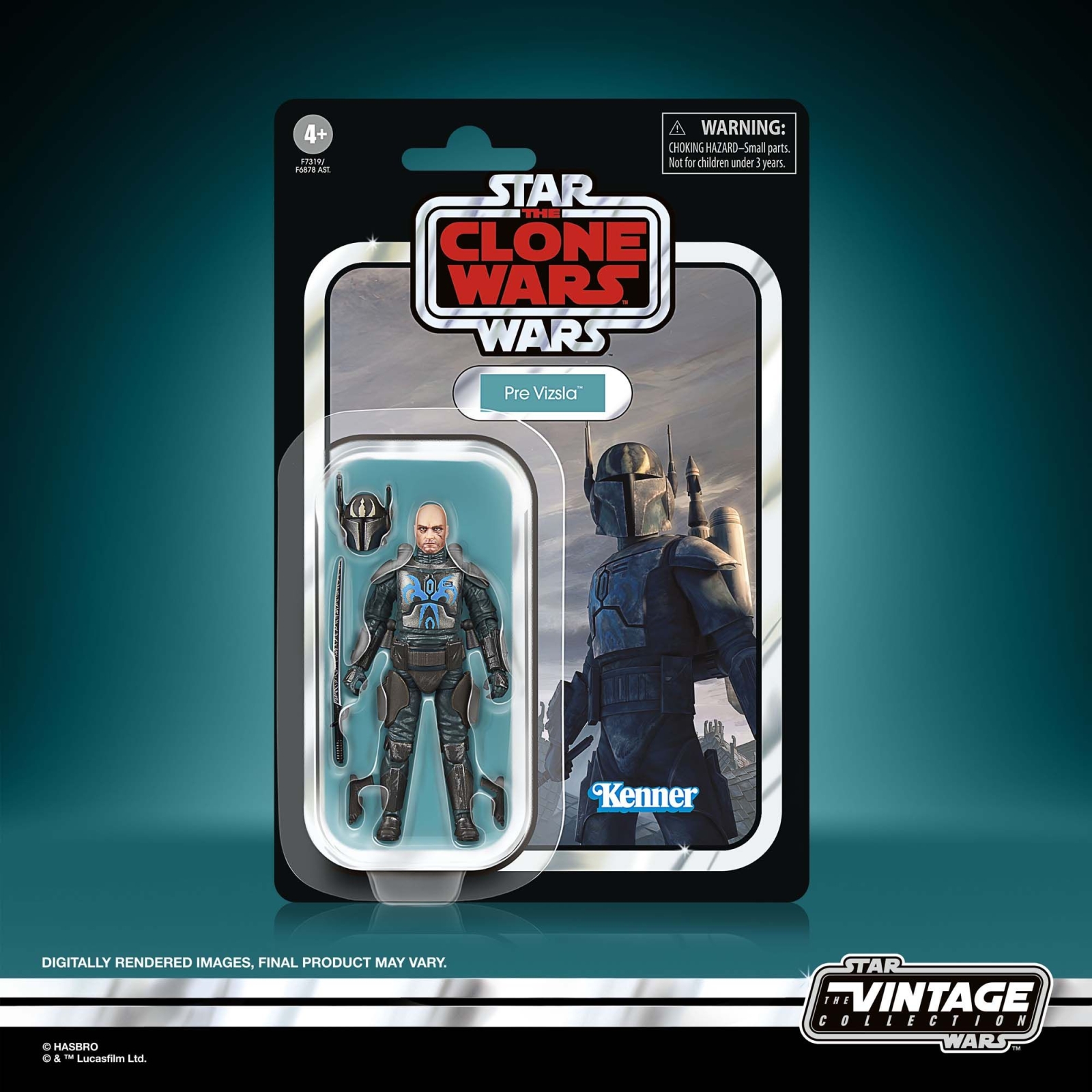 Pre Vizsla was governor of Concordia, a moon of Mandalore, during the Clone Wars. Behind closed doors, he led Death Watch, a secret group of commandos seeking control of Mandalore. Fans can celebrate the legacy of STAR WARS, the action-and-adventure-packed space saga from a galaxy far, far away, with this premium 3.75-inch scale STAR WARS: THE VINTAGE COLLECTION PRE VIZSLA figure inspired by the STAR WARS: THE CLONE WARS animated series. This figure features premium detail and design across product and packaging inspired by the original Kenner line, as well as the entertainment-inspired collector grade deco. Includes figure with 4 entertainment-inspired accessories including the Darksaber.