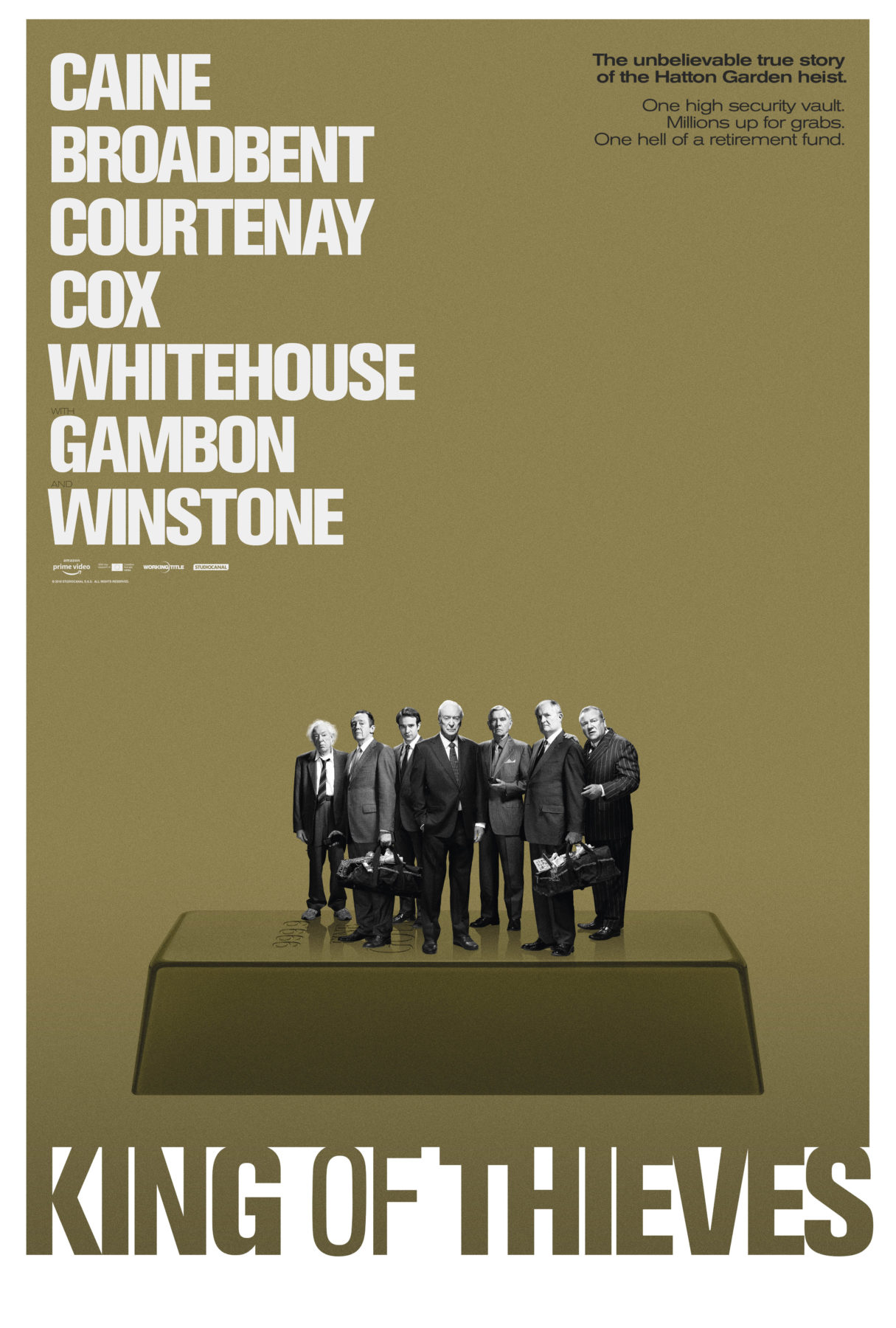 From the producers of Legend and Baby Driver, and featuring an all-star cast of homegrown legends led by Sir Michael Caine, King of Thieves is the darkly funny, incredible true story of the Hatton Garden robbery, the most daring heist in British criminal history.