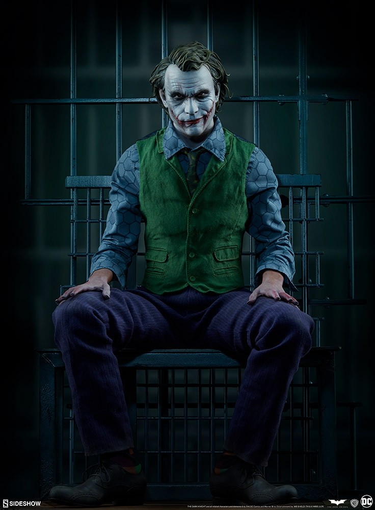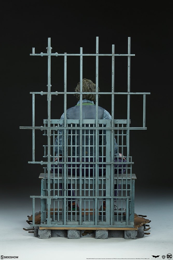 The Joker Premium Format™ Figure measures 20” tall and captures every chilling detail of Heath Ledger’s haunting performance as the Clown Prince of Crime himself. Based on the Gotham City police department scene from the film, this collectible includes a detailed environment base with jail bars that can be magnetically placed in front of or behind the figure for multiple display options.