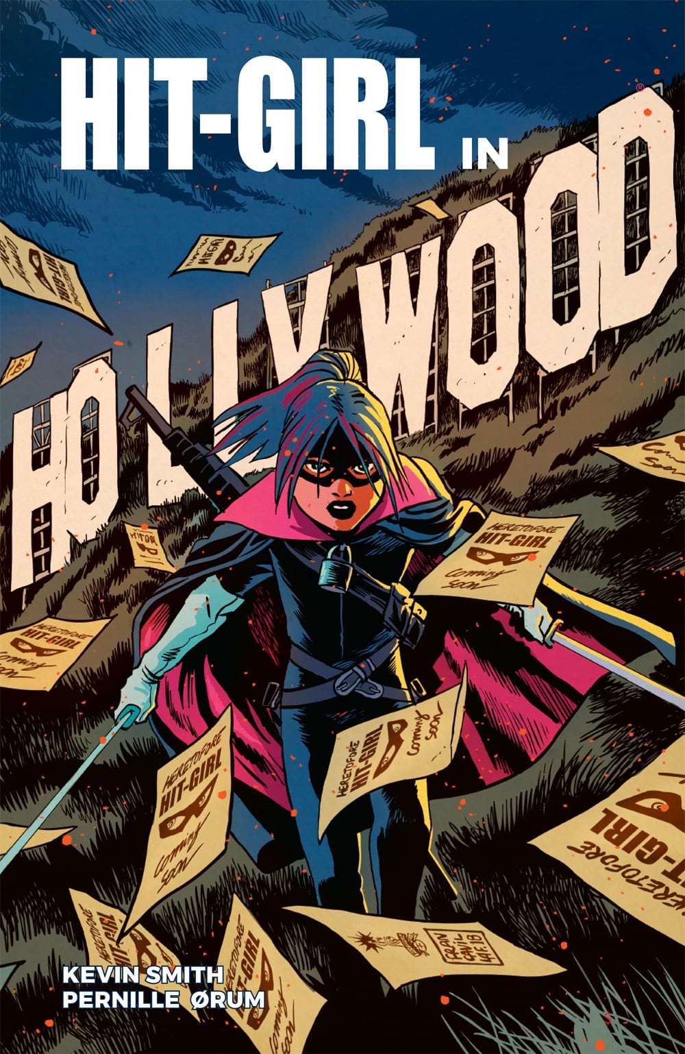 Mark Millar has announced that Mindy McCready is turning her sights to Hollywood’s sexual predators in a brand new comic book series entitled Hit-Girl: The Golden Rage of Hollywood, which is being penned by Kevin Smith with art from Pernille Orum. Here’s a look at the cover to the first issue by Francesco Francavilla…