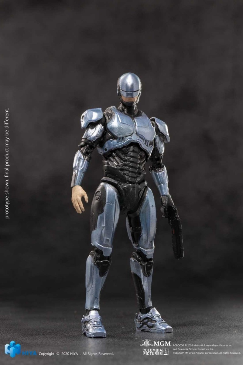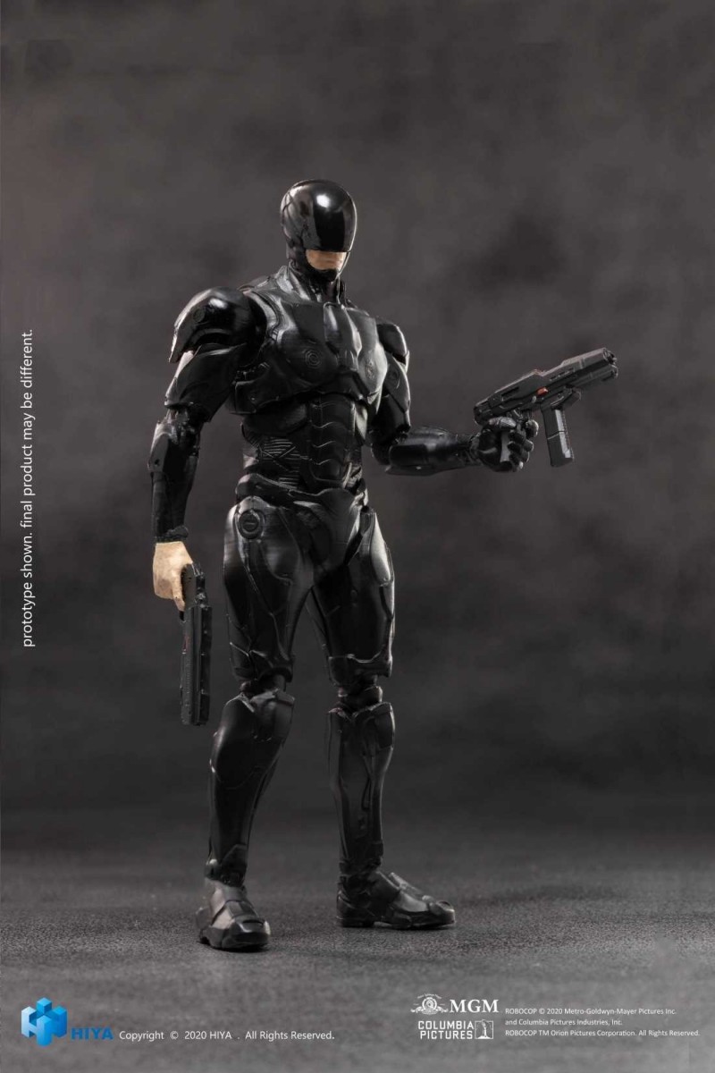 From the 2014 remake of the classic Robocop, Hiya Toys presents this a pair of PREVIEWS Exclusive 1/18-scale action figure of Robocop himself! Featuring a metallic paintjob that mimics the look of his silver armor in the film or an accurate recreation of the sleek black armor, as well as interchangeable hands to hold weapons, each Robocop figure stands 4 1/2″ tall!