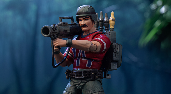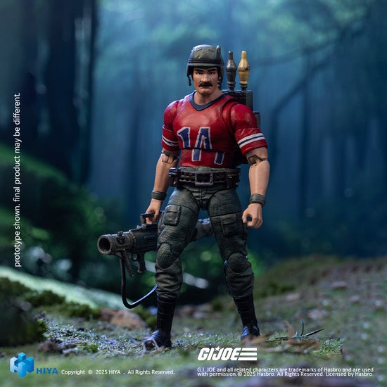 This brand new EXQUISITE MINI Series Bazooka action figure stands at 11CM tall. Based on the original G.I.Joe appearance, he wears his iconic red #14 football jersey over green pants and is topped with a military helmet. The detailing captures his unique look and readiness for heavy combat.