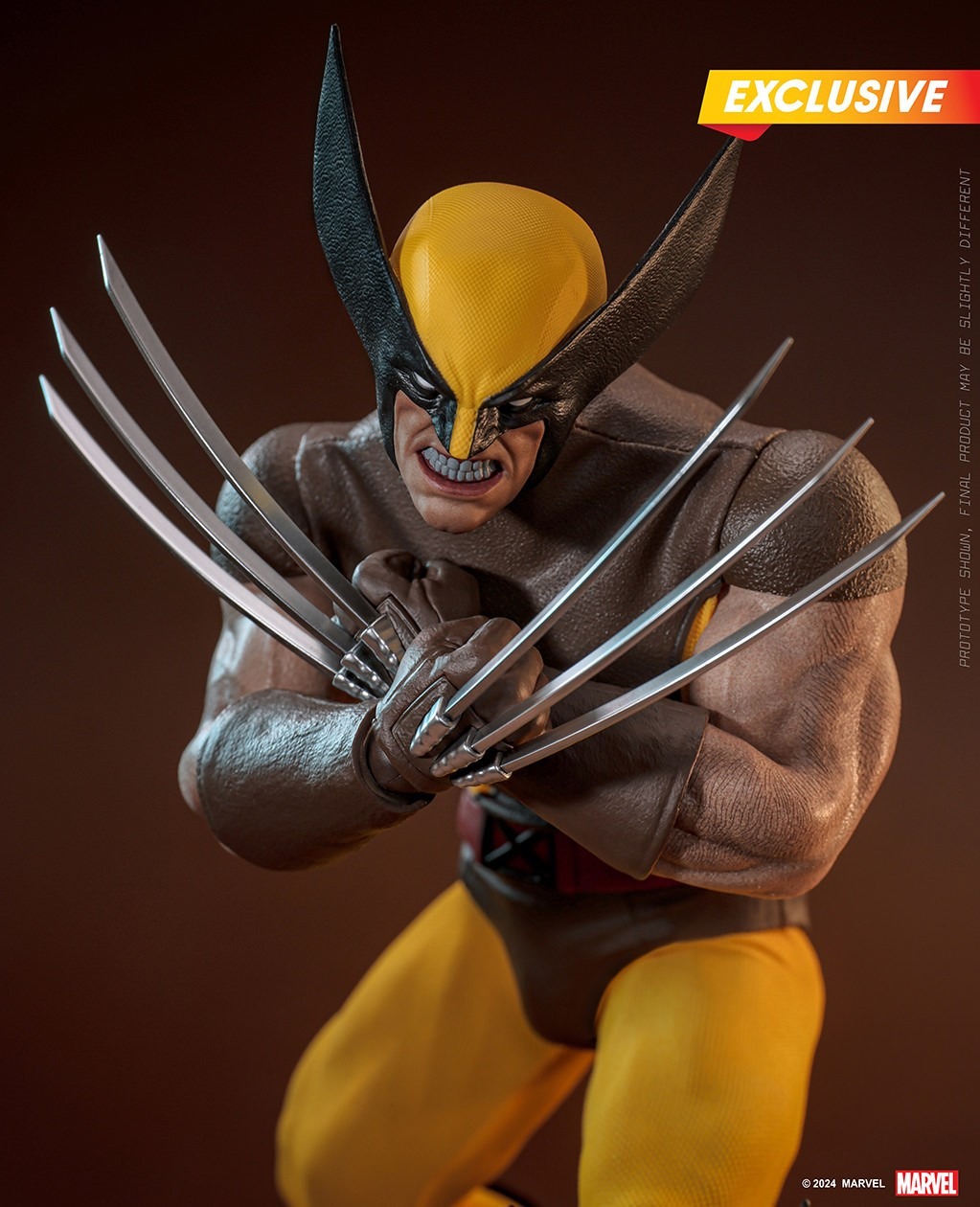 WHY NOT THE NEW COSTUME? Get yourself this X-Men – Wolverine (Brown Suit) Action Figure by Hono Studio! Capturing the longest-worn suit in the comics, Wolverine in brown suit, includes a figure, comic cover style backdrop and Wolverine’s retractable claws for different postures! Different from the most well-recognized suit, this sixth-scale Wolverine is in a brown and yellow-orange suit while the shoulder pads align with the suit design. Alongside multiple points of articulation and seamless silicone arms, the figure also comes with a red Muramasa blade he earns in the comic! Limited quantity of 1,500 units is available only in selected markets.
