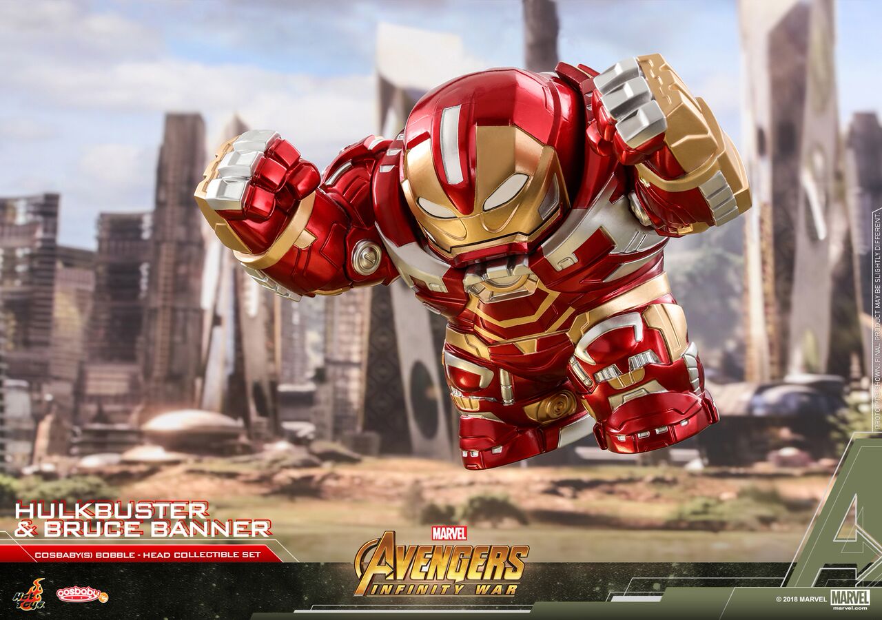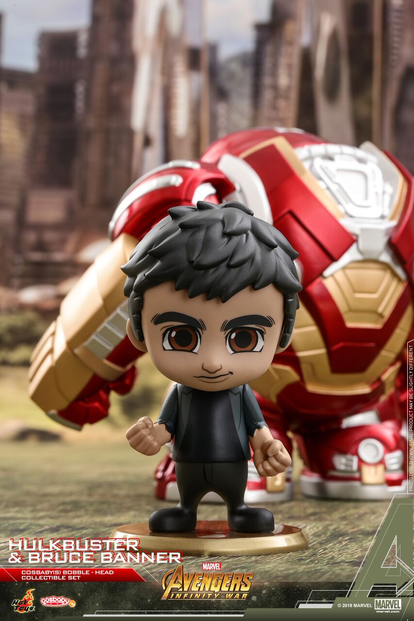 Hot Toys has unveiled a new Cosbaby Bobble-head collectible set for the upcoming Marvel superhero epic Avengers: Infinity War which includes Mark Ruffalo’s Bruce Banner and the Hulkbuster (and confirms that, as many suspected after the first trailer, it will be Bruce donning the Hulkbuster armor rather than Tony Stark); take a look at the official promotional images here…