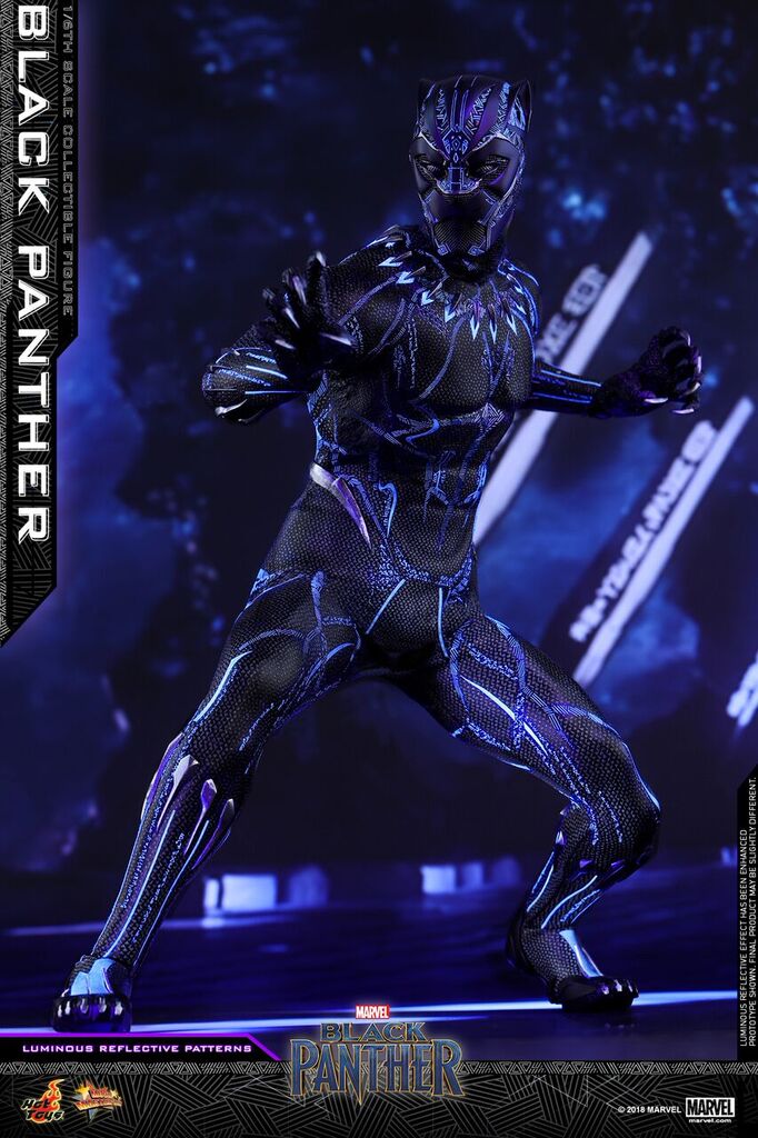 In anticipation to the release of exciting Marvel blockbuster Black Panther, Hot Toys is proud to present our latest creation – Black Panther 1/6th scale collectible figure. For the first time ever, Hot toys has incorporated insanely detailed luminous reflective patterns into the costume to re-create this extraordinary new Panther Habit suit with mystical elements under specialized LED lighting exposures.