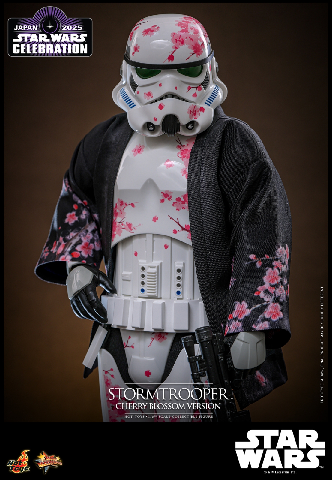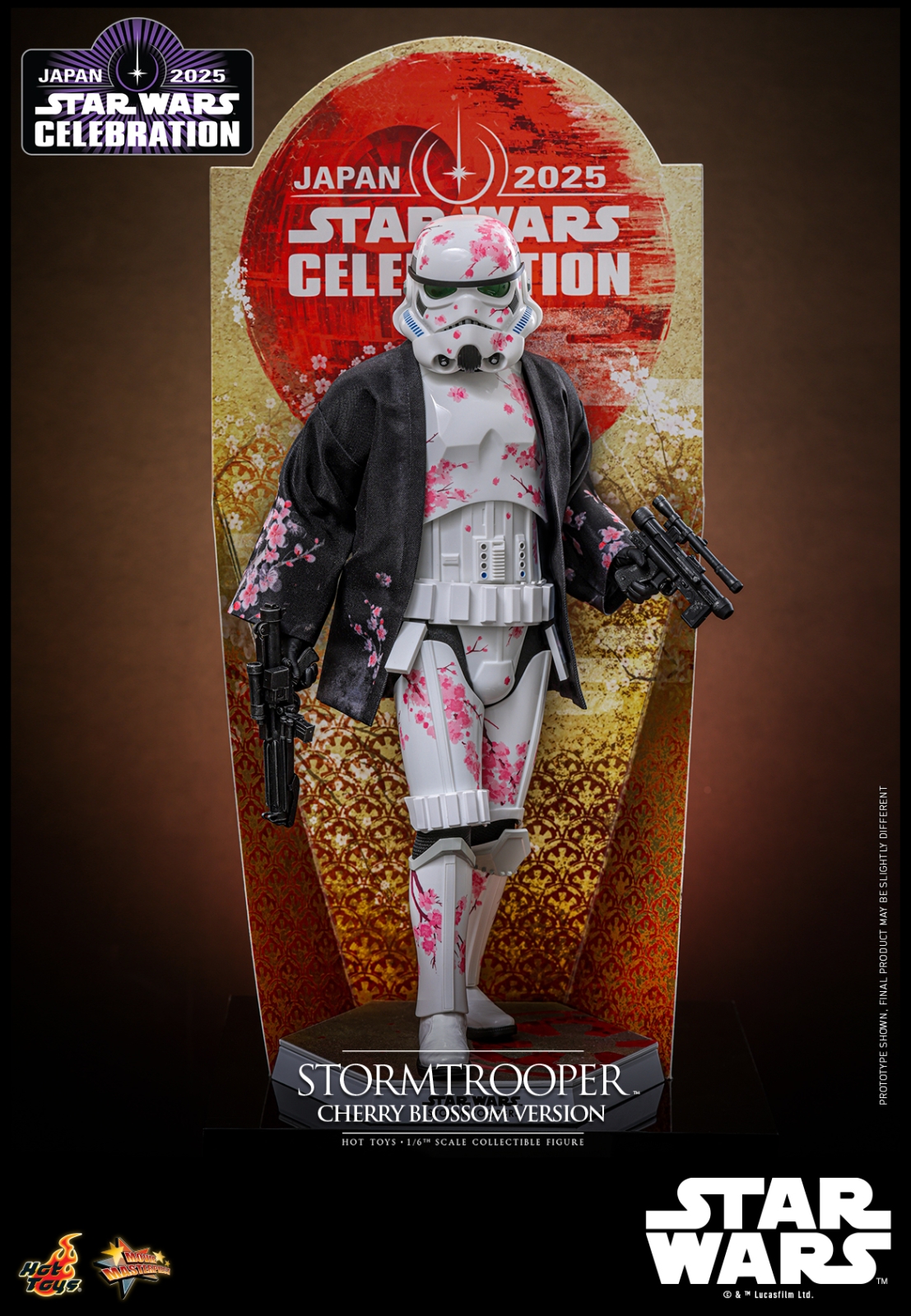 The collectible figure features finely crafted Stormtrooper helmet and armor with great articulations for dynamic poses to be displayed alongside the blaster rifles. Meticulously printed throughout the figure, the cherry blossom pattern creates a delicate aesthetic over the armor sleek lines and brings a fresh twist to the iconic Stormtrooper design. The commemorative Star Wars Celebration Exclusive edition includes an additional cherry blossom patterned haori jacket and a Star Wars Celebration-themed backdrop, enhancing the suit with a tasteful design. Star Wars Celebration Exclusive version, limited to 1,000 units, is available in Star Wars Celebration; and Hot Toys Exclusive version, limited to 1,500 units, is available in selected channels.
