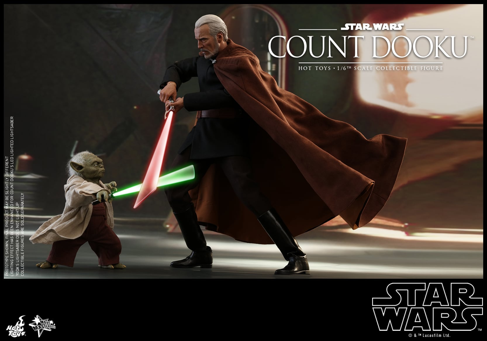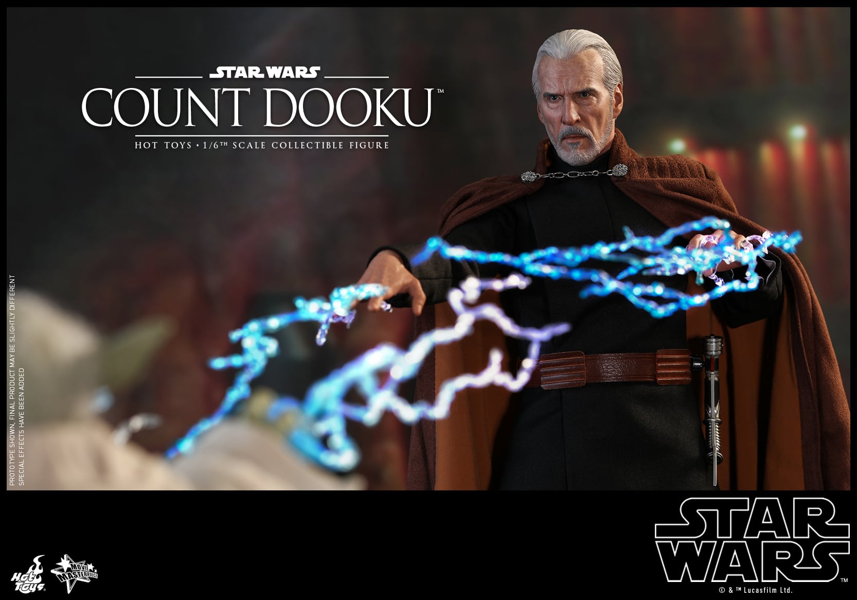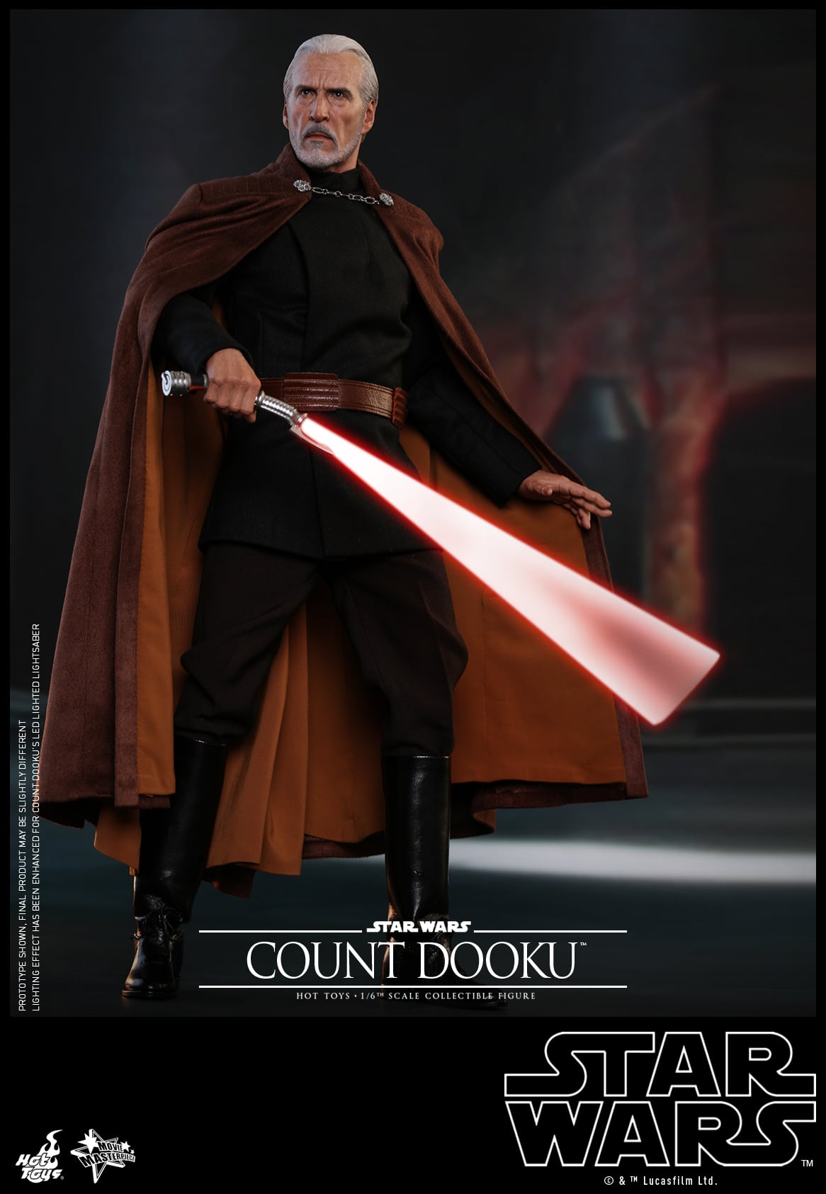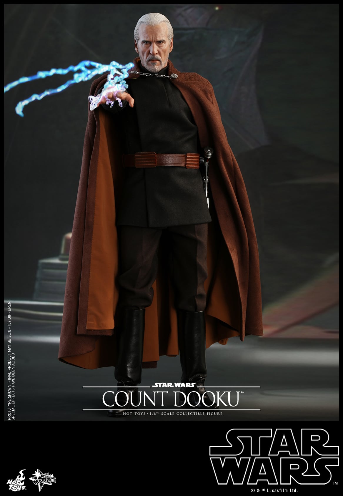 Masterfully crafted based on the appearance of Count Dooku in the movie, the 1/6th scale collectible figure features a newly developed head sculpt with striking likeness, a meticulously tailored costume with Dooku’s beautifully designed cape, a LED light-up lightsaber, a number of interchangeable hands, a pair of Force Lighting effect parts that are attachable to hands, a hologram projector and several hologram figures including Death Star, Jango Fett, B1 Battle Droid and Darth Sidious.