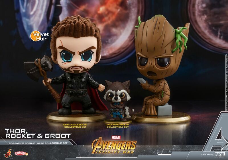 Hot Toys has revealed a new line of Cosbaby Bobble-Heads for the hotly-anticipated Marvel blockbuster Avengers: Infinity War which includes Black Panther, Black Widow, Captain America, Hulk, Loki, War Machine, Winter Soldier, Groot, Rocket, Iron Man, Star-Lord, and Thor, along with two collectible sets; check them out here…