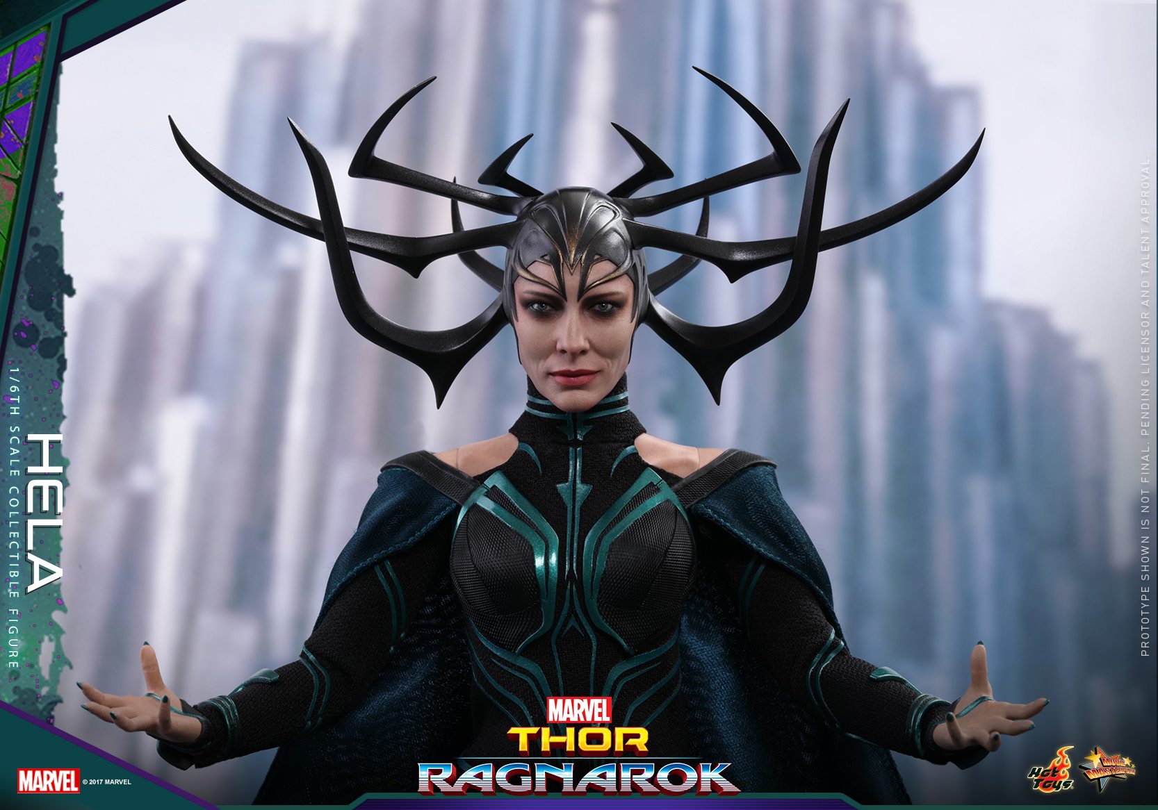 Hot Toys has unveiled its 1/6th scale Movie Masterpiece Series Hela figure which is based on the likeness of Cate Blanchett’s villain in the the Marvel blockbuster threequel Thor: Ragnarok. The Goddess of Death comes with a range of interchangeable accessories which includes a magnetically attachable green colored cape, two swords, a damaged Mjolnir attached to the hand, seven hand pieces, and a figure stand; take a look at the official promotional images here…