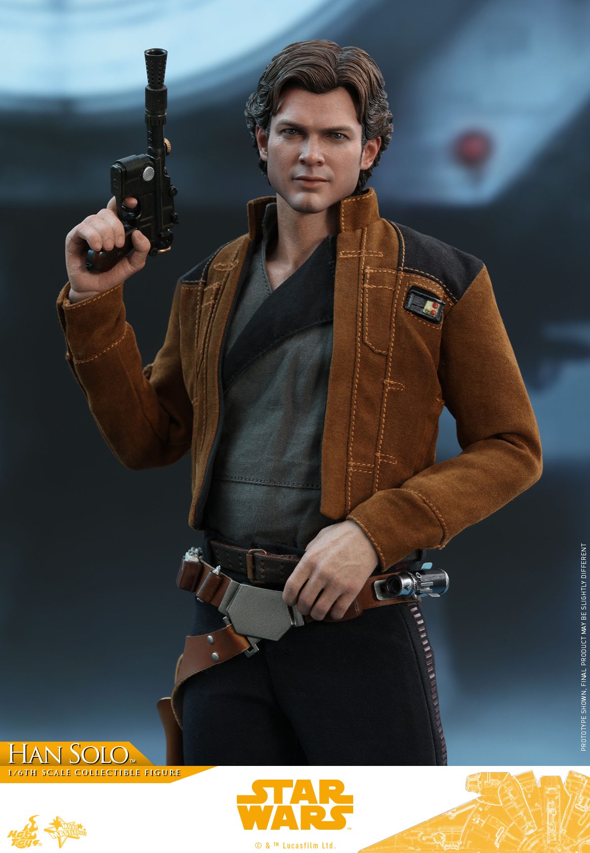The movie-accurate 1/6th Han Solo collectible figure is meticulously crafted based on the appearance of Han Solo in the movie, featuring a newly developed head sculpt with remarkable likeness, a specially tailored outfit, the iconic blaster pistol, an assortments of accessories including the symbolic gold-colored lucky dice, a wristwatch, a communicator and a specially designed figure stand.