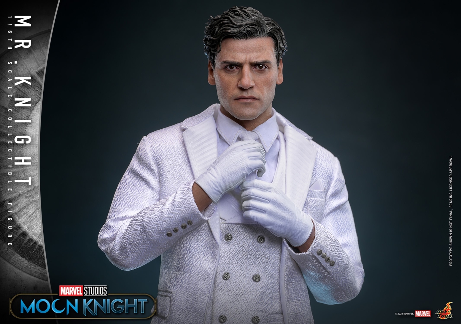 Sophisticatedly crafted based on Mr. Knight’s appearance in Marvel Studios’ Moon Knight, the highly detailed figure features a newly sculpted Marc Spector/Steven Grant head sculpt with separate rolling eyeballs, along with a newly developed masked head with LED light-up function design on eyes. Mr. Knight’s all-white costume is a finely tailored three-piece suit, highlighted by a herringbone pattern on the fabric and adorned with ancient symbol buttons on the suit jacket and waistcoat, as well as a pair of white boots with bandage-wrapped design to complete his outfit. The figure also comes with a Scarab, and a figure stand for display.