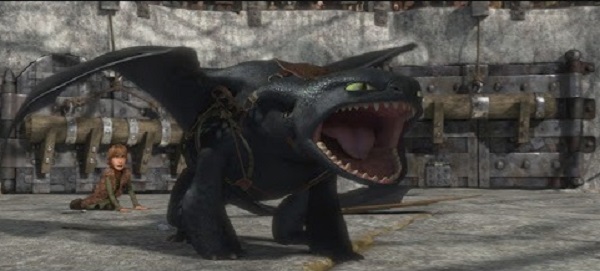 In Cressida Cowell’s novel Hiccup’s dragon, Toothless, is believed to be an astoundingly small, Common or Garden Dragon. The Toothless in the novels was also green and red, not jet black like the movie counterpart. For the movie iteration Toothless was an injured Night Fury, a rare breed of dragon known to be more powerful than other species of dragons featured in the story. The producers made this change with the approval of author Cressida Cowell, convincing her that it would be more cinematic to make Toothless a dragon that could be ridden as flying mount for both Hiccup and Astrid. The dragon’s name in the movie came from Hiccup’s observation that its teeth retract into its jaws to avoid interfering with fire breathing. In the book it was named thus, due to its lack of teeth.