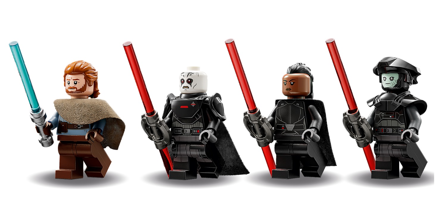 - 4 LEGO® Star Wars™ minifigures – Ben Kenobi with a blue lightsaber, plus the Grand Inquisitor, Reva (Third Sister) and the Fifth Brother, each with double-bladed red lightsabers