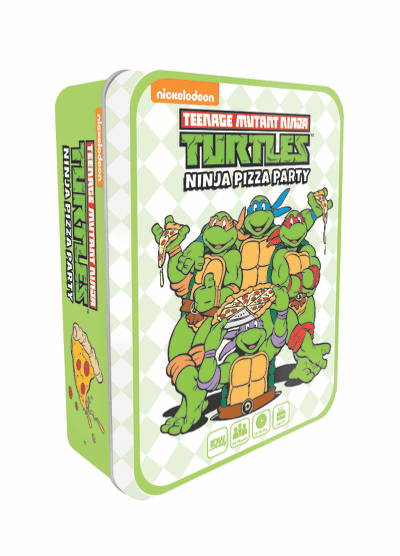 Teenage Mutant Ninja Turtles: Ninja Pizza Party is delivered in a collector’s tin and includes 60 pizza slices with crazy topping choices such as toasted marshmallows, banana slices, cheese puffs, popcorn, and more! Designed for 2-6 players and for fans of all ages, get ready for action in the kitchen and make a pizza for your favorite Turtle!