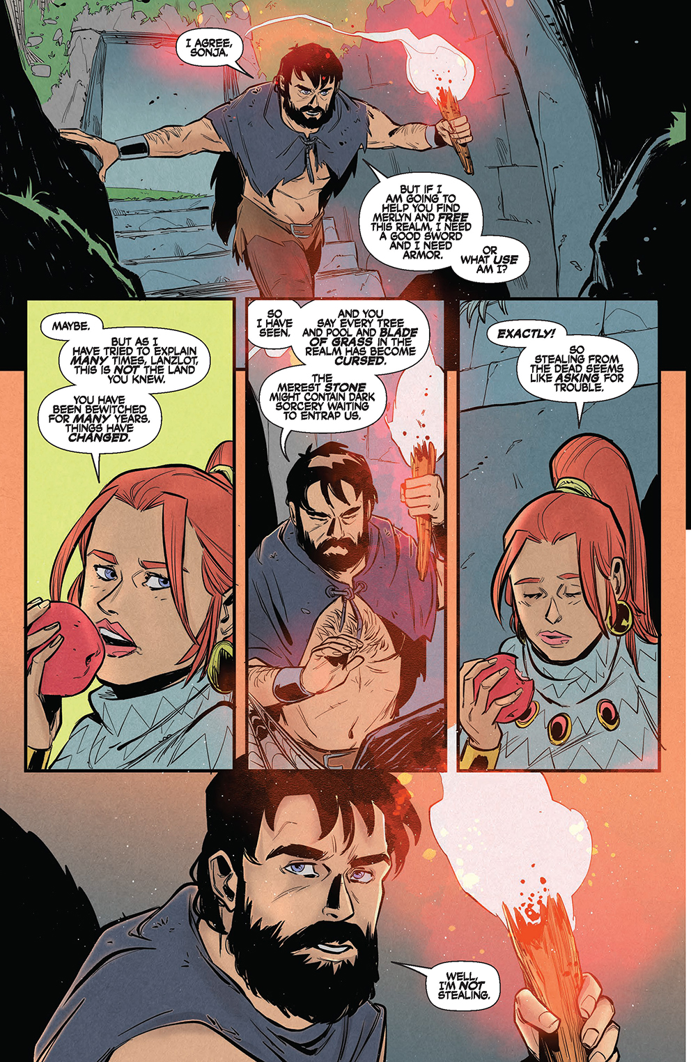 The journey has been long, and the dangers grave — but now, armed with a fuller understanding of the burden she carries, Sonja the Red and her cursed chainmail set off on the final leg of their magical journey through the Dead Lands. What she finds in the endless fog, and the truths that Merlyn reveals, will change her forever — and set the whole world in a new direction!