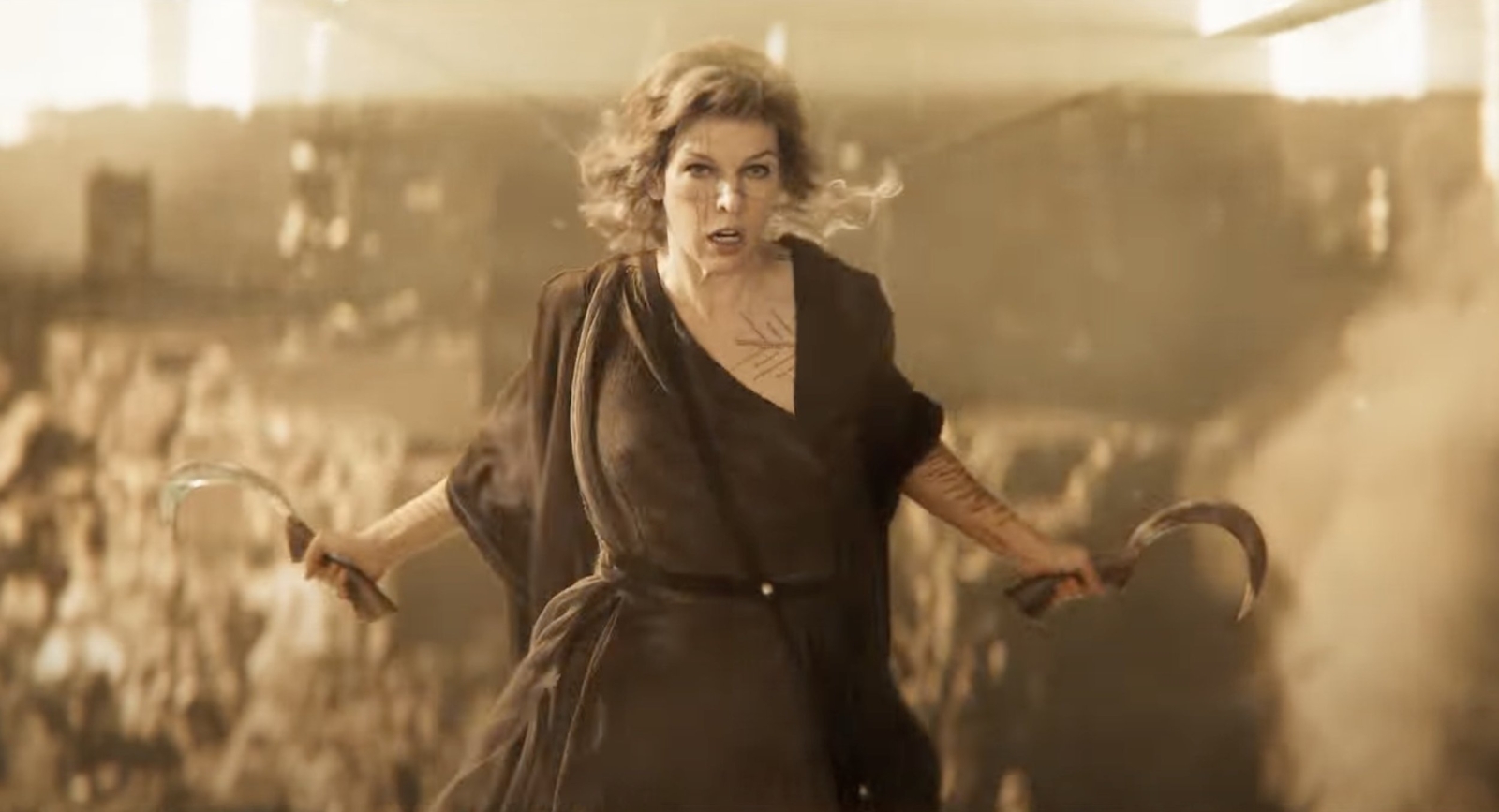 Shot through dusty cinematography with additional thick CGI weather effects, Glen MacPherson successfully gives the film the feel of a long, lengthy journey and a painterly, pleasant graphic novel aesthetic. He also seems to know the right angles to watch characters unsheathe their surprise weapons and generally shoots the action competently; a gunfight inside of an airborne cable car where that situation becomes more perilous by the second comes to mind. Beyond the copious amounts of zany, propulsive action, and star charisma, Paul W.S. Anderson’s In the Lost Lands feels, well, a little lost.